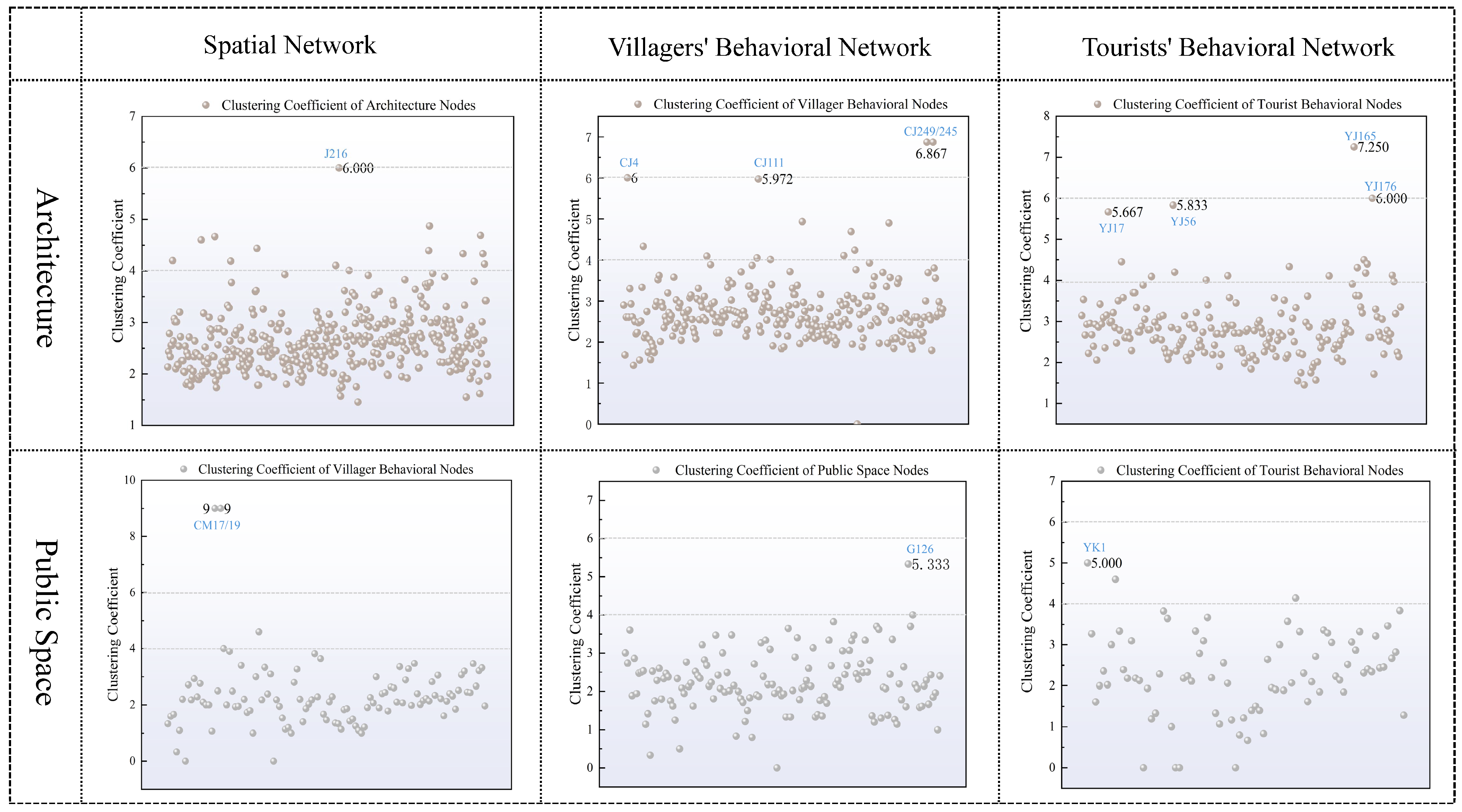 4.4.2. Clustering Coefficient Analysis of Spatial and Behavioral Networks in Wulin Village