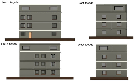 Concerning energy analysis, hourly dynamic simulations based on the TRNSYS18 environment [38], a software package that simulates the behavior of transient systems, were carried out. Only the building was simulated using the TRNBUILD module. This means that only the building thermal needs were calculated through TRNSYS18, while the primary energy consumption was obtained via direct calculation in a spreadsheet. Space heating and cooling loads are affected by the building envelope design, while domestic hot water (DHW) production, lighting and ventilation do not depend on the envelope thermal properties. So, DWH, lighting and ventilation can be assumed to be “invariant” with respect to the kind of analysis that is proposed in this paper, and for the sake of brevity they have been excluded from the analysis since they do not add to the discussion. Within TRNSYS18, the Type56 component was utilized to model the building’s thermal behavior, dividing it into separate zones. In this work, three separate thermal zones were set up to represent the different areas of the building (one for each floor), as well as one for the vertical extension, corresponding to the three apartments on the ground, first and second floors and the new third floor. Type56 was used in the so-called “energy rate mode”, where a predefined internal temperature “setpoint” schedule is provided and the necessary heating or cooling load is determined as the output. The boundary conditions for the thermal simulations were the outdoor temperature, global solar radiation on the horizontal, relative humidity and wind speed, determined on an hourly basis according to the Italian Test Reference Year for the specific town [32]. Ground temperature was set at 12.5 °C. Since this approach is widely adopted for calculating building-specific energy consumption based on various international standards, it was assumed for the all the analyses.