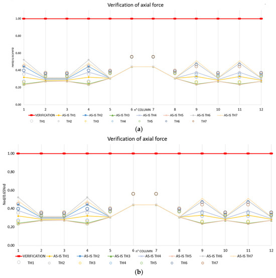 Focusing first on the two interventions proposed herein, II-S1 and II-S2, the slightly superior structural performance of II-S1 emerges through observation of the structural index, , while, by definition, both interventions achieve the same energy index, . Consequently, the bi-objective index, , captures the marginally higher overall performance of II-S1, identifying it as the optimal solution among the two variants. When compared with the interventions II1 and II3 in the literature, the proposed vertical extensions with the IIS configurations demonstrate superior performance in both structural and energy domains.