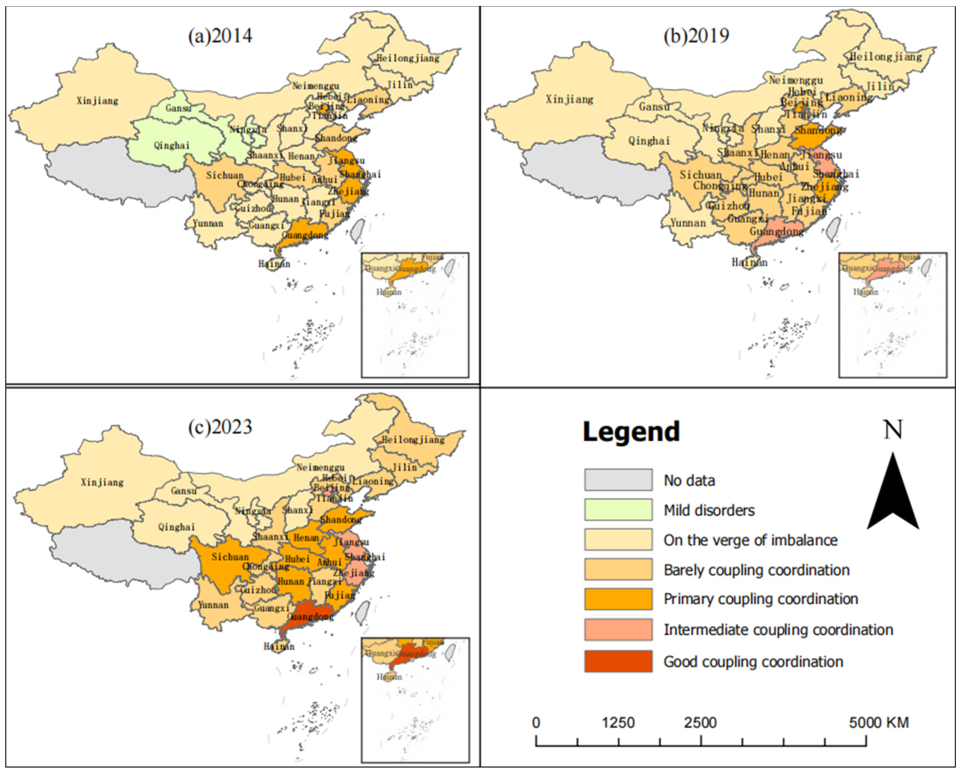 4.1. CCD of NQP-CER-HQED in China from 2014 to 2023