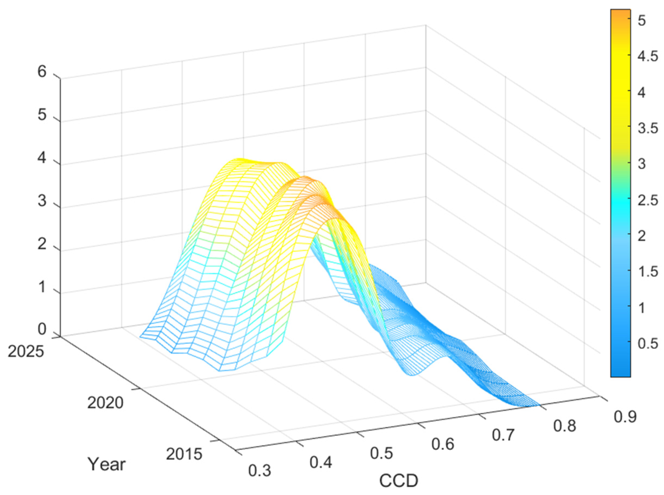 3.2.3. Spatial–Temporal Evolution Analysis of CCD