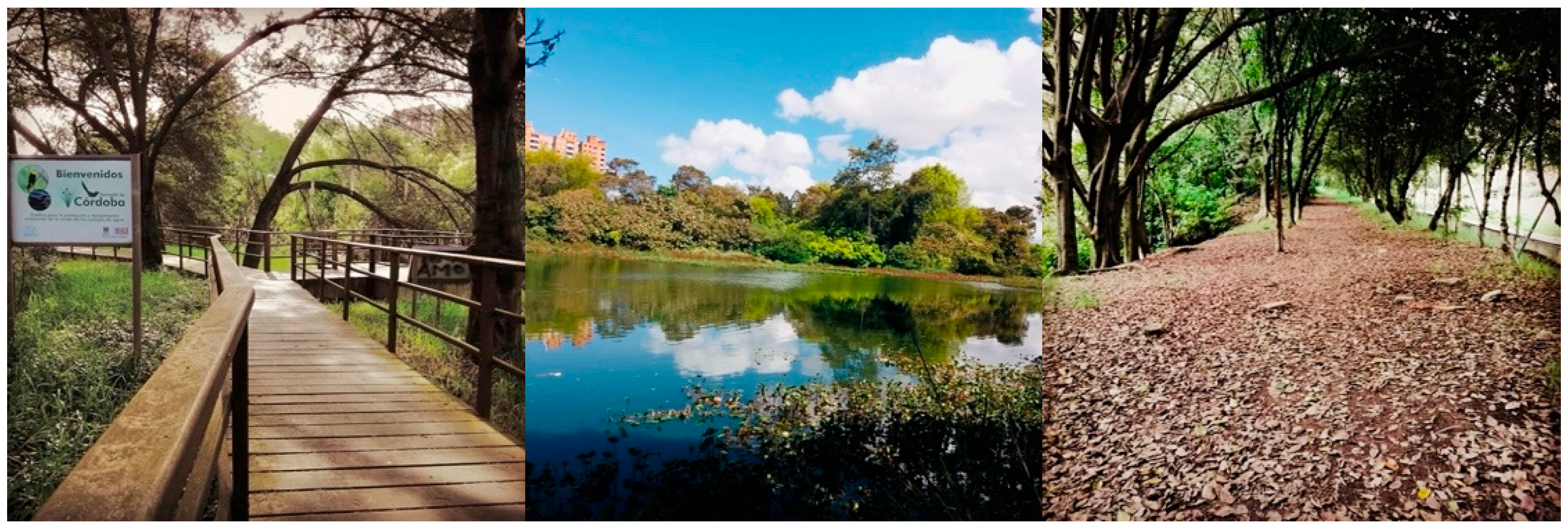 - SDA Córdoba Wetland. District Secretariat of Environment of Bogotá. Available online: https://www.ambientebogota.gov.co/humedal-cordoba (accessed on 5 July 2025).