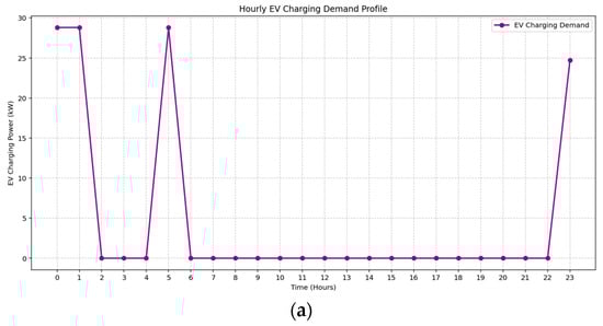 Electric vehicle charging is integrated as a flexible, shared community load operating within a predefined charging window from 6:00 PM to 6:00 AM, aligning with off-peak residential hours and occupant behavior patterns under the adopted time of use tariff structure. The model assumes the installation of four EV charging stations in the common area, accessible to all EV-owning tenants. Each charger is rated at 7.2 kW, resulting in a combined maximum power capacity of 28.8 kW [53].