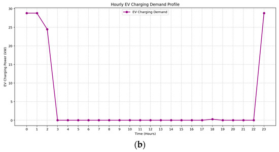 The total daily charging energy is set at 100 kWh, based on an average demand of 25 kWh per EV, consistent with mid-sized EV usage in typical urban residential settings. Rather than assigning fixed schedules, the MILP-based optimization model flexibly allocates charging energy across eligible time slots to minimize costs, while remaining within power and energy limits. Although real-world EV charging behavior is not explicitly modeled, the framework allows future integration of empirical data.