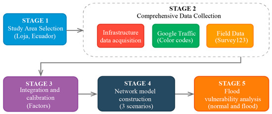 The methodological approach implemented in this study follows a systematic five-stage framework designed to integrate multiple data sources and overcome the limitations of individual traffic information systems in medium-sized cities (See