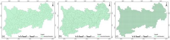 Study scale: (a) Municipal scale; (b) watershed scale; (c) grid scale.