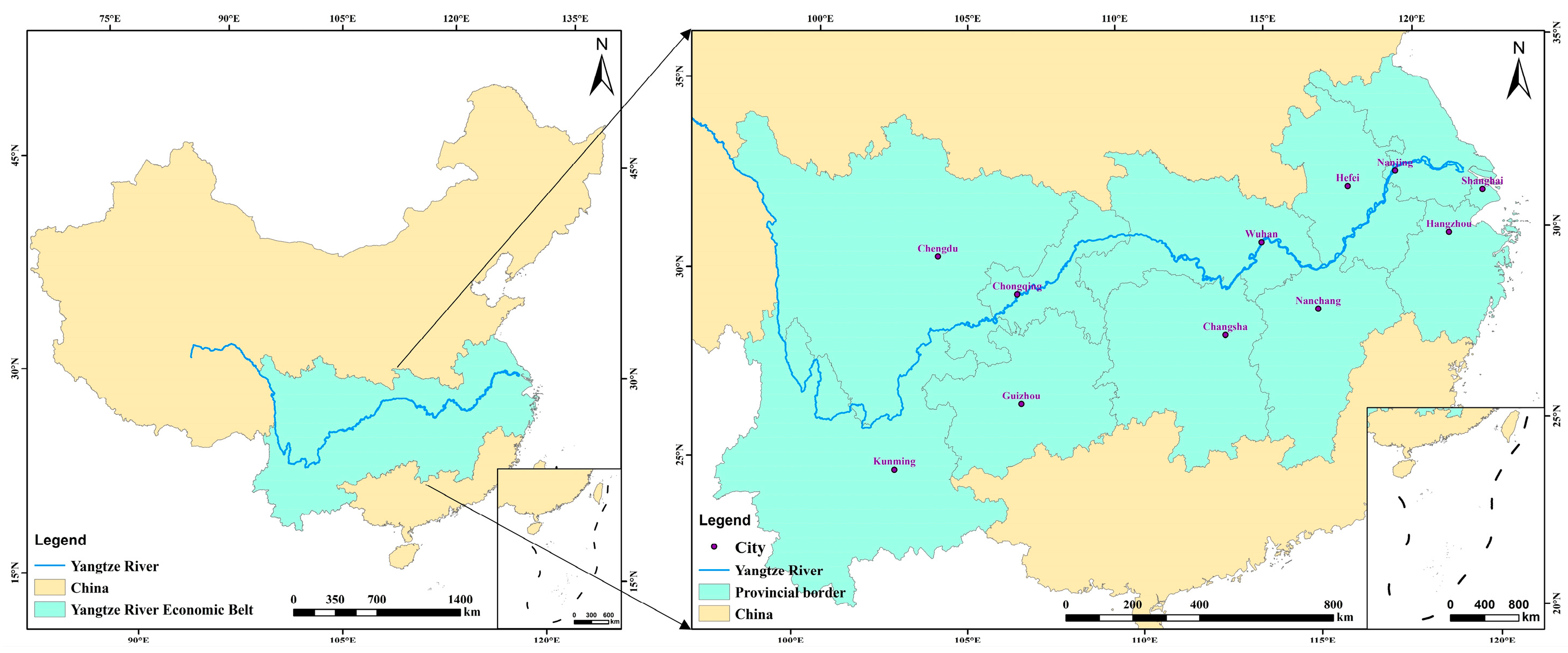 - He, Q.; Kong, F.; Wen, C. Evolution of Harmonious Coexistence Between Humans and Nature in the Yangtze River Economic Belt: A Production-Living-Ecological Balance Perspective. J. Hubei Univ. Econ. 2020, 18, 109–119. [Google Scholar] [CrossRef]