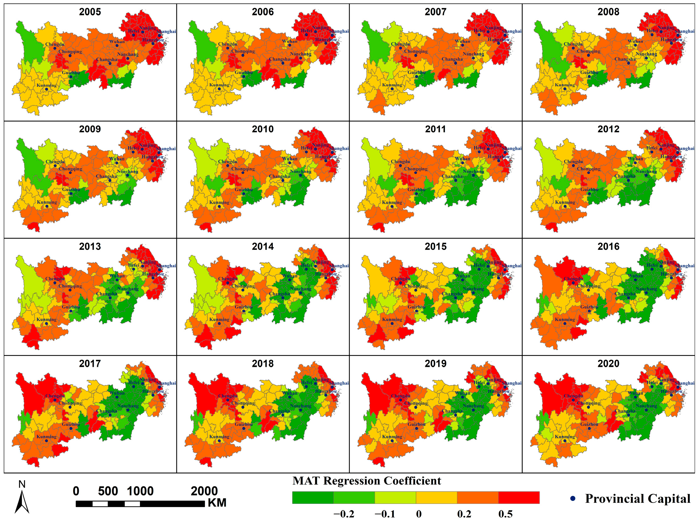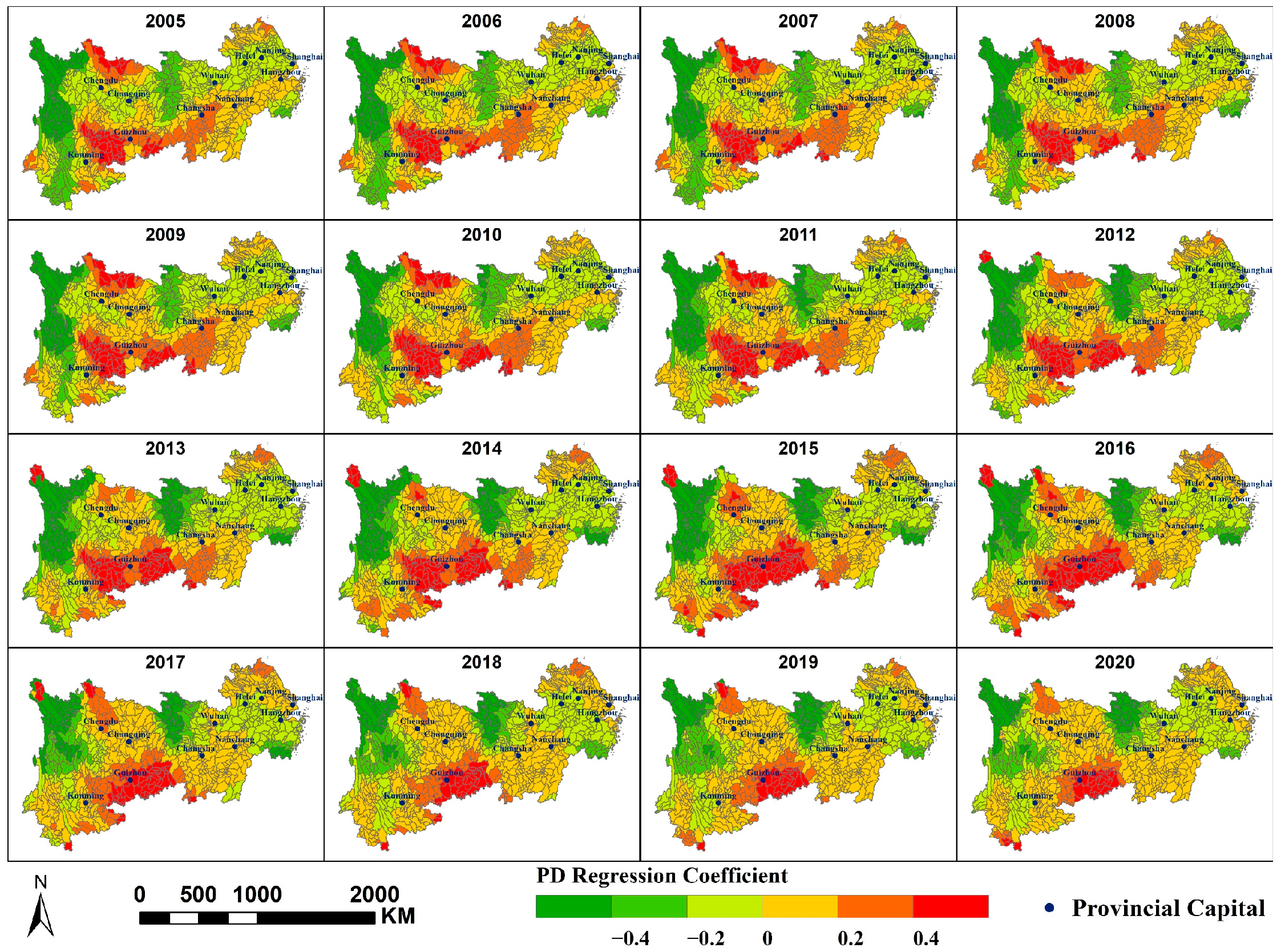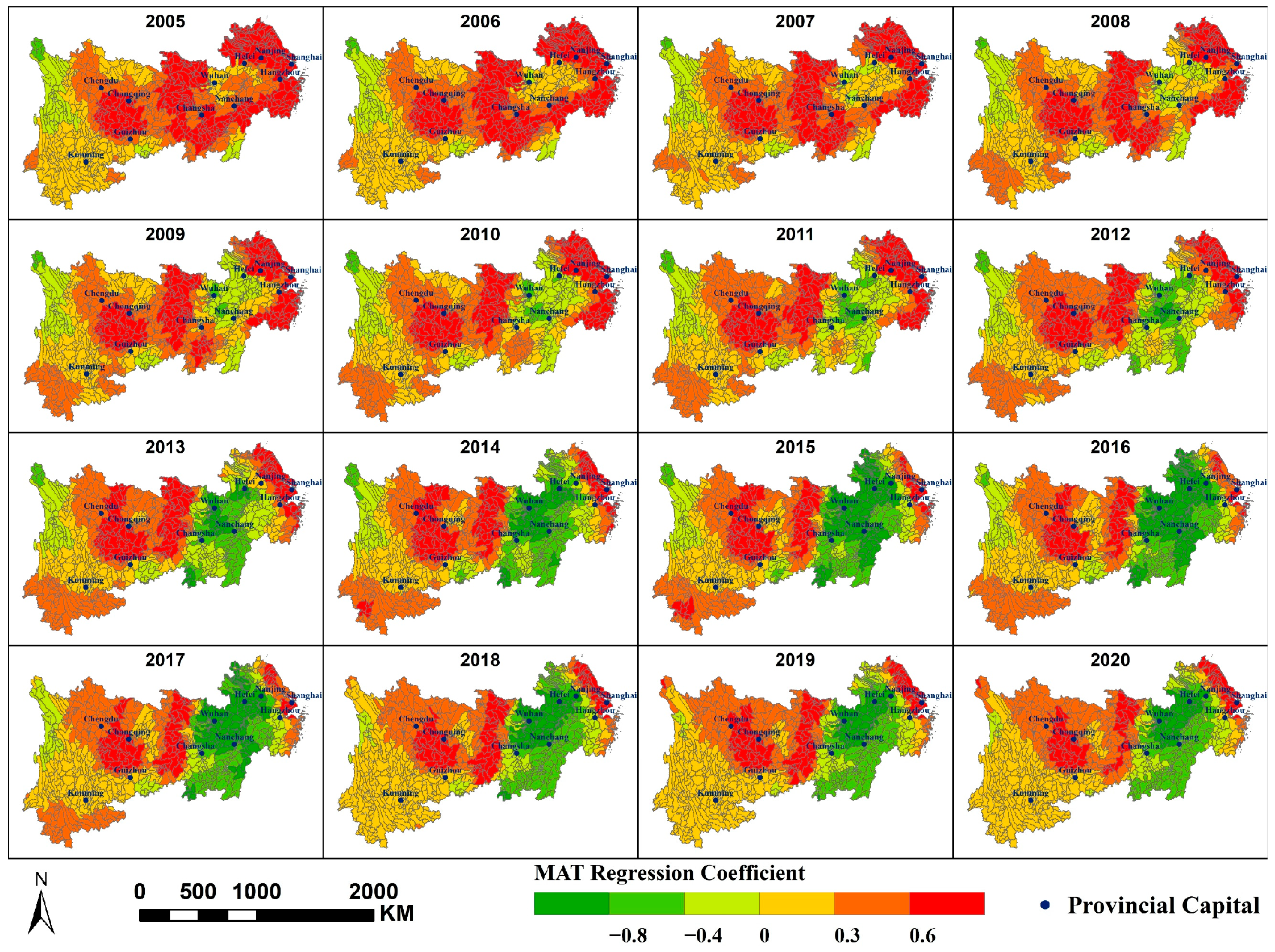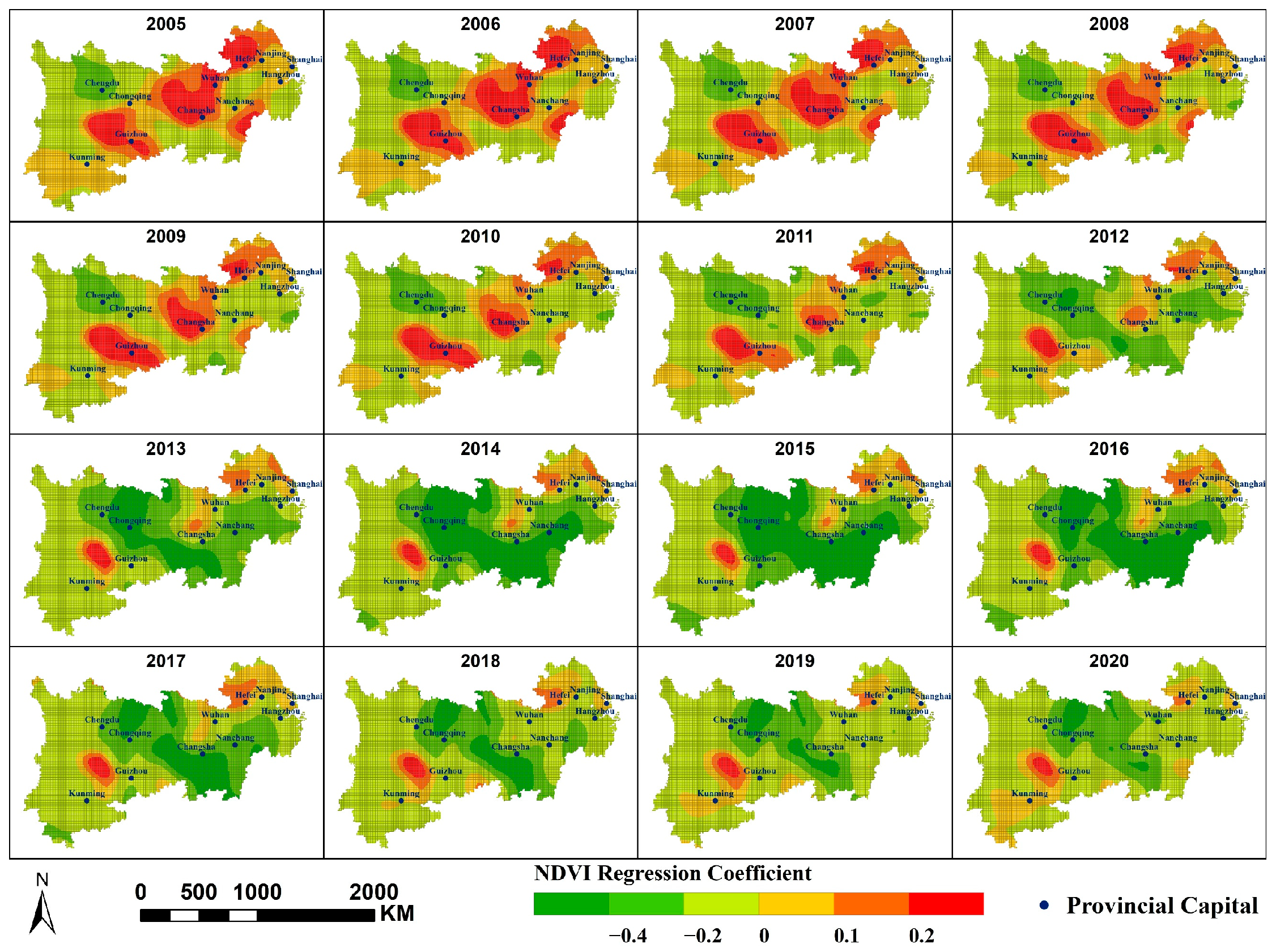- From 2005 to 2020, the annual average PM2.5 concentration in the Yangtze River Economic Belt showed a significant overall downward trend in both spatiotemporal variations, with no regions exhibiting a notable increase. PM2.5 concentrations decreased slowly in the western region, while they declined more rapidly in the central and eastern regions.