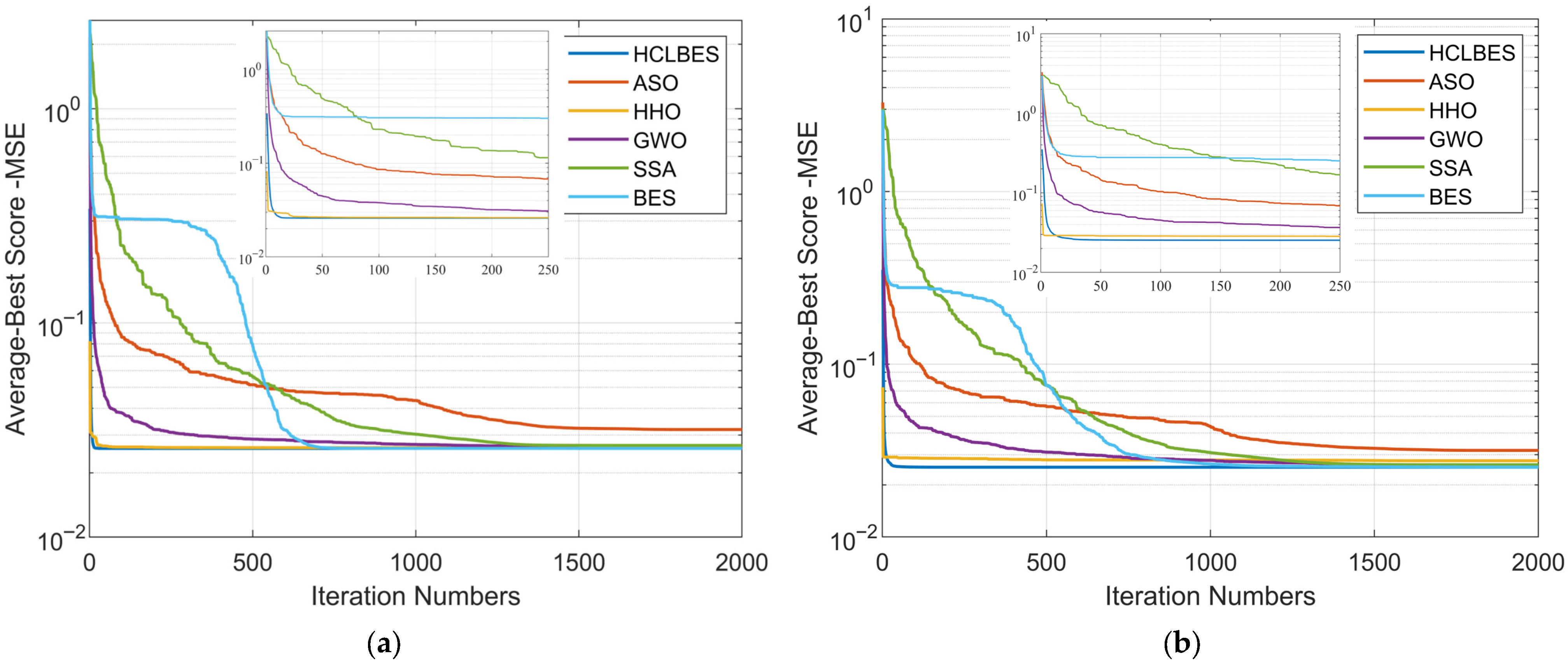 To accurately determine the unknown parameters in the context of optimization challenges, it is essential to define the objective function, as it guides the algorithm to reach the optimal parameter values. In the literature, numerous studies used the sum of the squared errors (SSE) [14,15,23,24,25,26,27,28,29,30,47] as an objective function, while few have utilized the Mean Squared Error (MSE) [22]. Accordingly, in this study, the MSE is selected because it normalizes the error by the number of data points, providing a scale-independent measure that facilitates comparison across datasets of varying sizes. Furthermore, MSE fines larger errors more heavily due to the squaring operation, which can enhance optimization stability and lead to more accurate parameter estimation during the training process [22]. The rest of this paper is structured as follows: the proposed HCLBES algorithm is explained along with its implementation phases for application to PEMFC modules in Section 2, Section 3 and Section 4. Section 5 describes the formulation of the PEMFC model problem and the objective function. Section 6 features simulation and results. Section 7 presents a summarization of the results discussion. Finally, conclusions and outcomes are presented in Section 8.