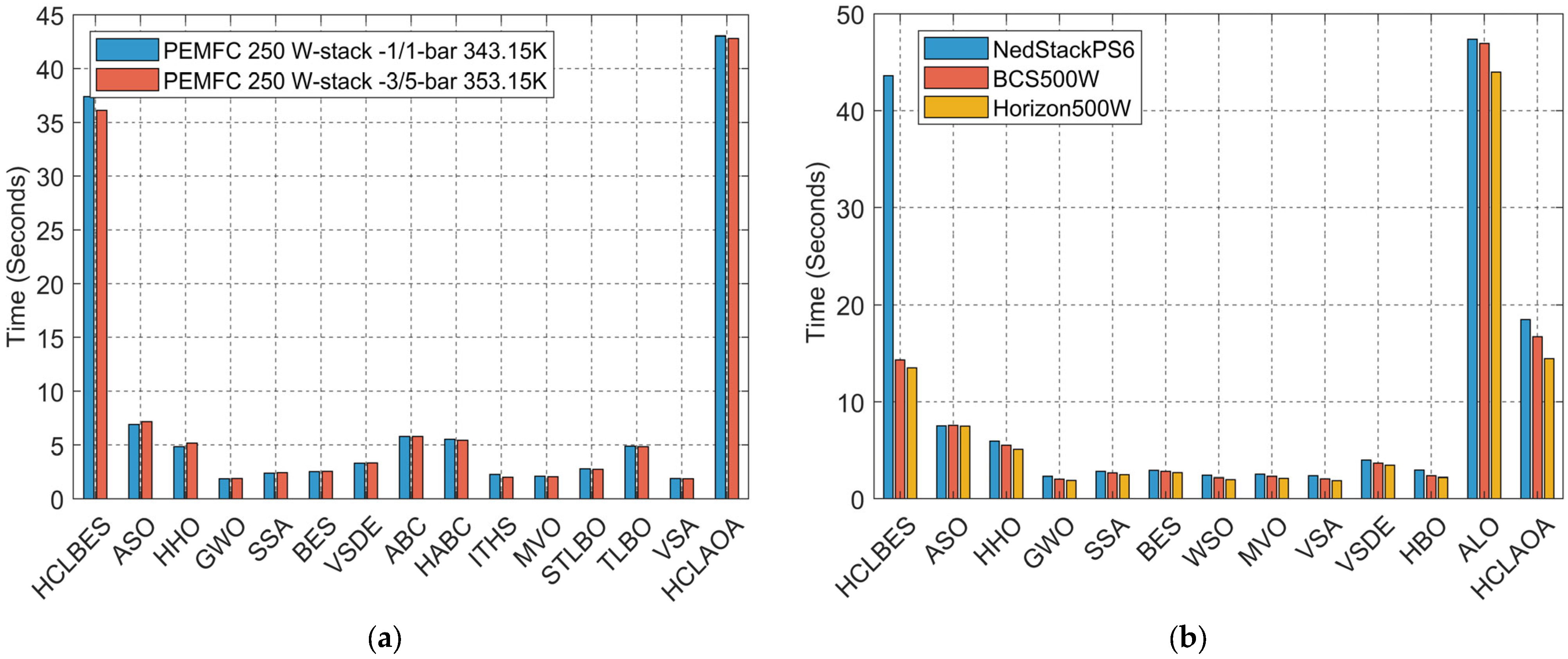 Table 7. Statistical analysis of the proposed HCLBES and other counterparts of the PEMFC 250 W model corresponding to an operating condition of 3/5 bar at 353.15 K.