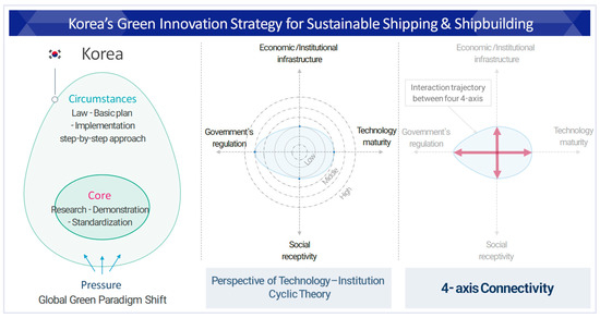 | [Step 1] Establishing a legal and institutional foundation ↔ Inducing technological development | - ⌈Act on Promotion of Development and Distribution of Environmentally Friendly Ships⌋ | - Development of LNG, methanol, ammonia, and hydrogen engines, and research into direct current-based electric propulsion systems. | Legal–Institutional Induction |