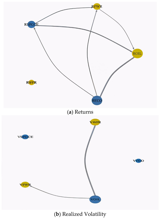 The dichotomy observed in the transmission dynamics between returns and realized volatility underscores a complex tapestry of asset interrelations and sensitivities. The domain of returns is highlighted by strategic economic evolutions and policy interventions, especially within nascent sectors such as renewable energy. Conversely, the volatility narrative is significantly shaped by broader energy paradigms, capturing the immediacy of market responses to global shifts and economic uncertainties.