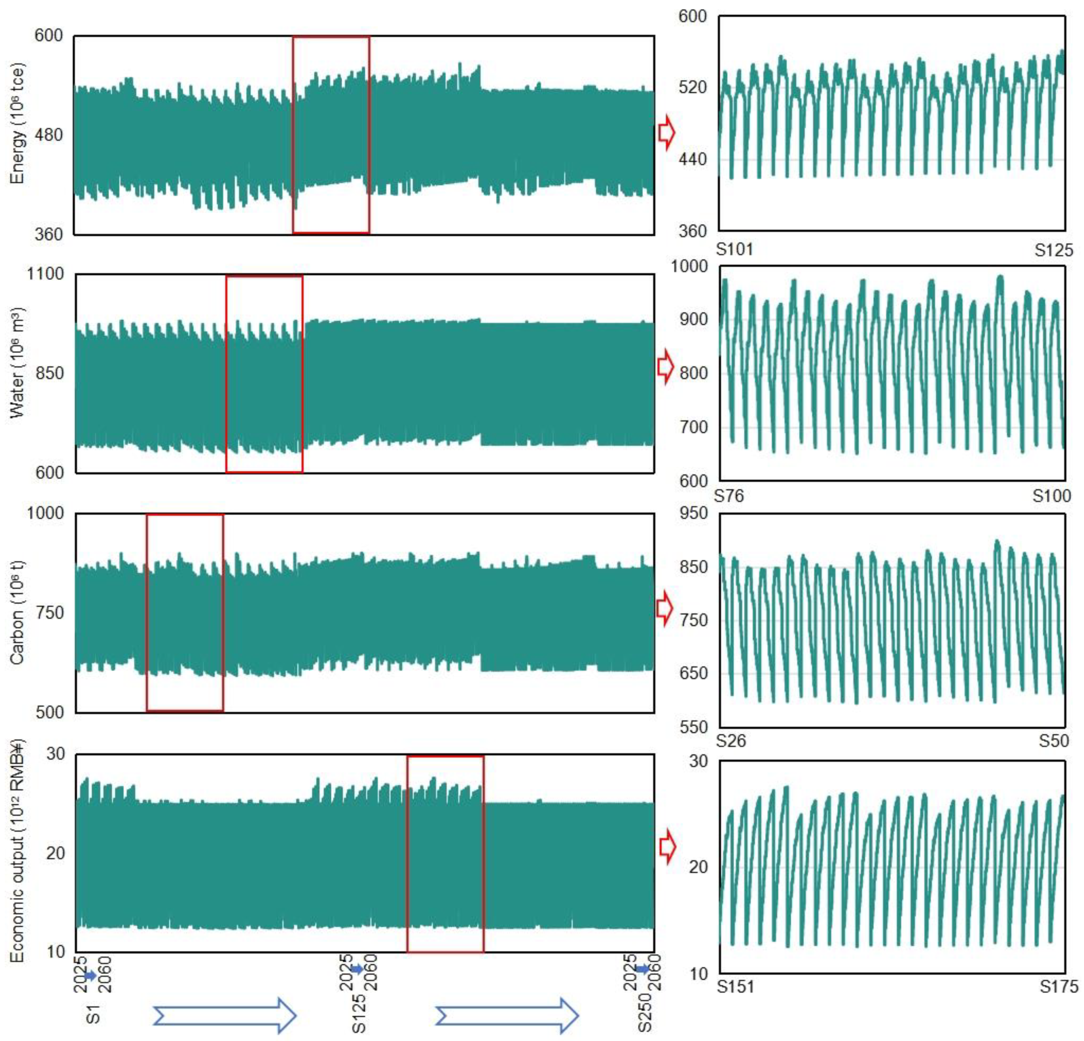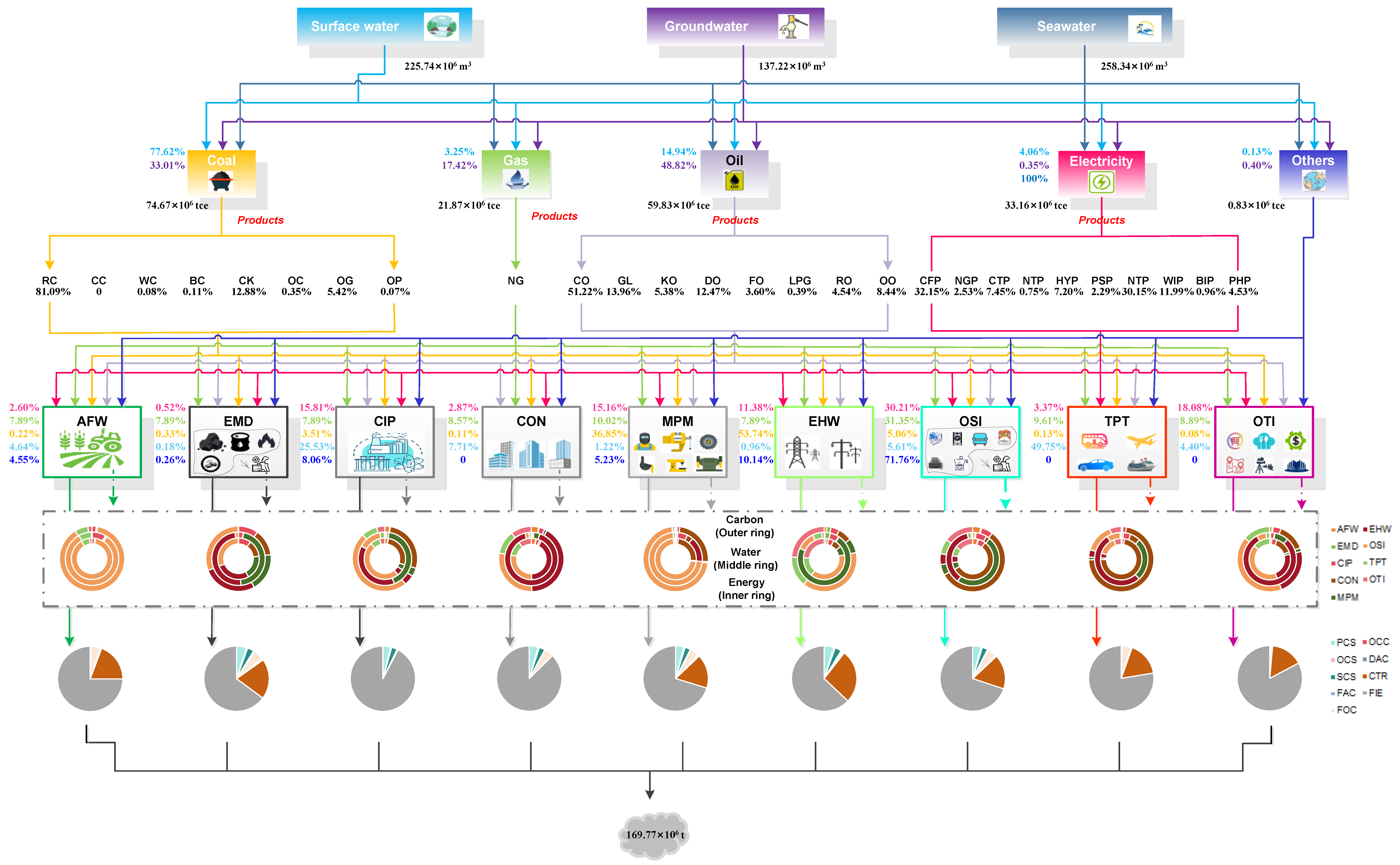 - Chen, Y.; Huang, G.; Liu, Y.; Luo, B.; Wang, S.; Li, Y.; LI, X. Energy-water-carbon system management in response to climate change in China under uncertainties (2026–2050). Resour. Conserv. Recycl. 2025, 212, 107957. [Google Scholar] [CrossRef]
