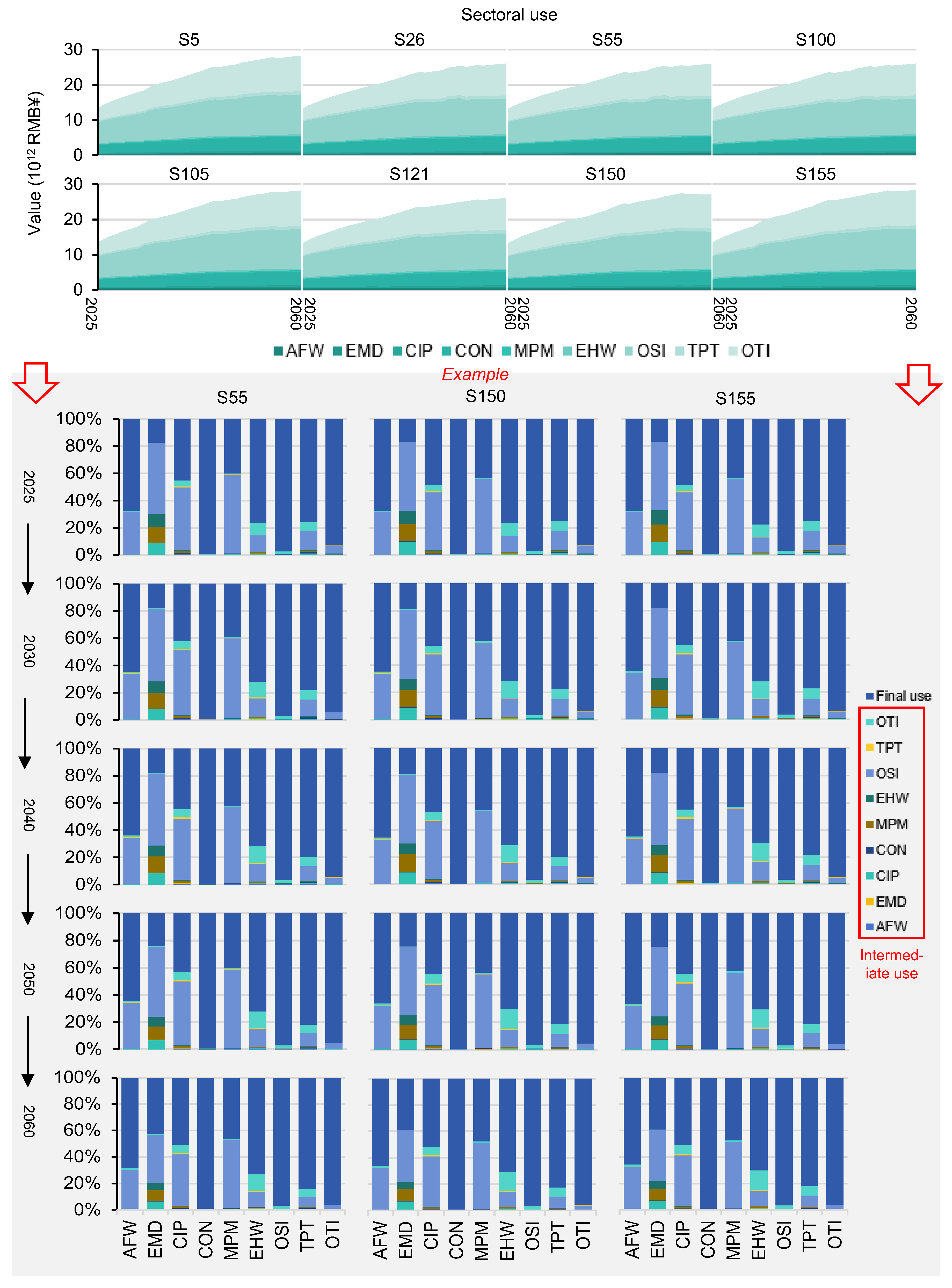 - The strategic advancement of key sectors (e.g., CON, OSI and OTI) is significant to obtain great total economic outputs;