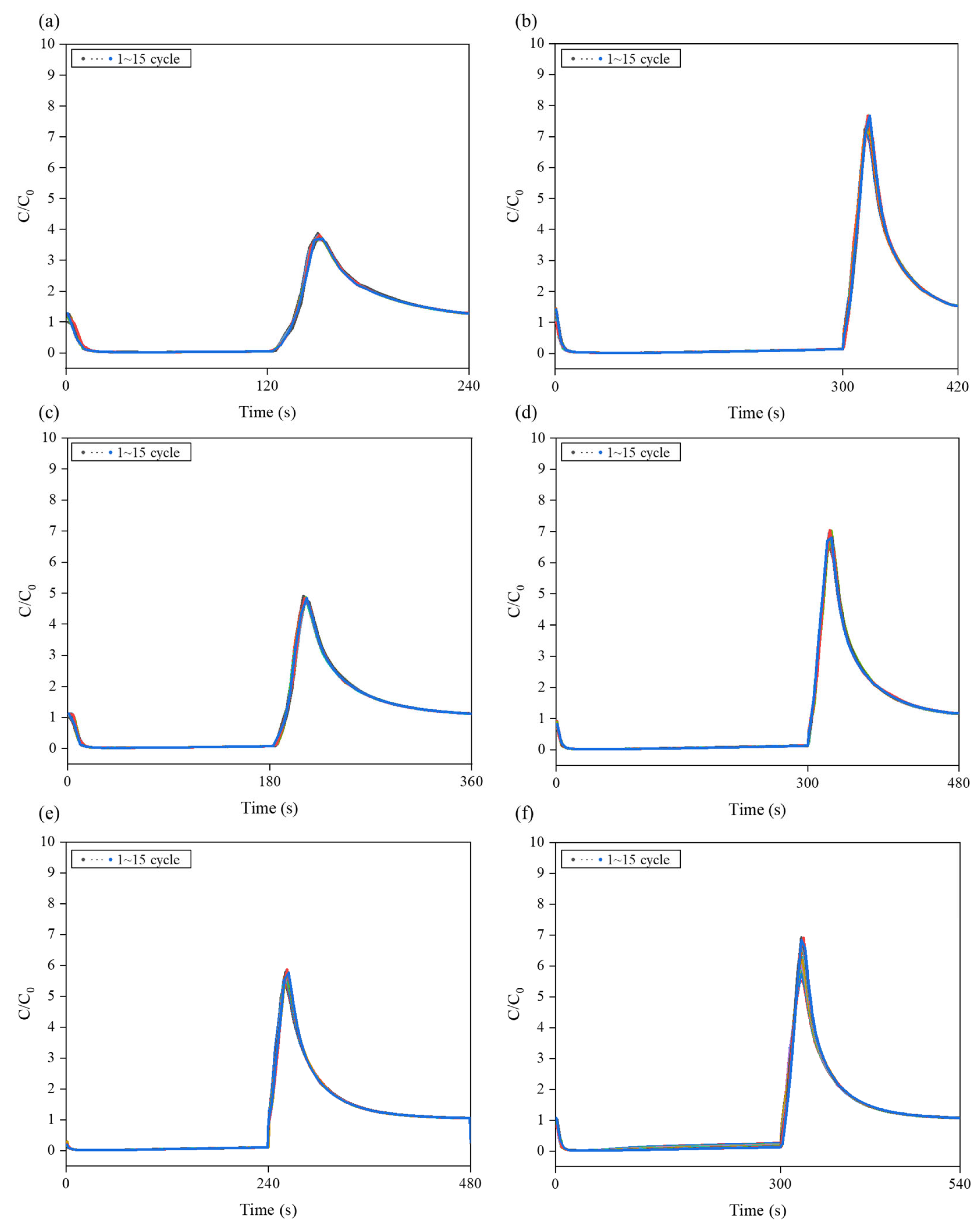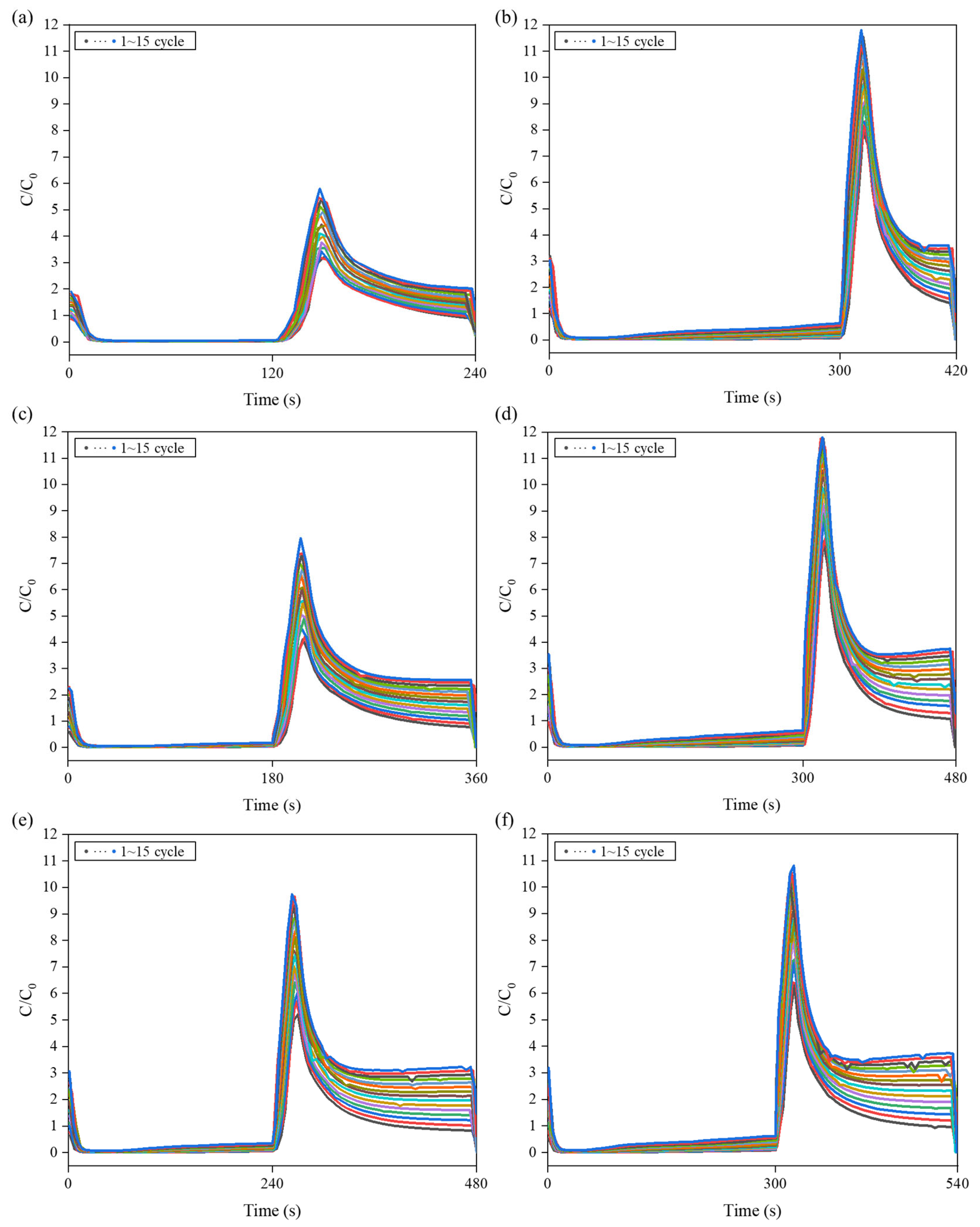 | Type of Cycle | Operation Conditions (Adsorption/Desorption, min) |