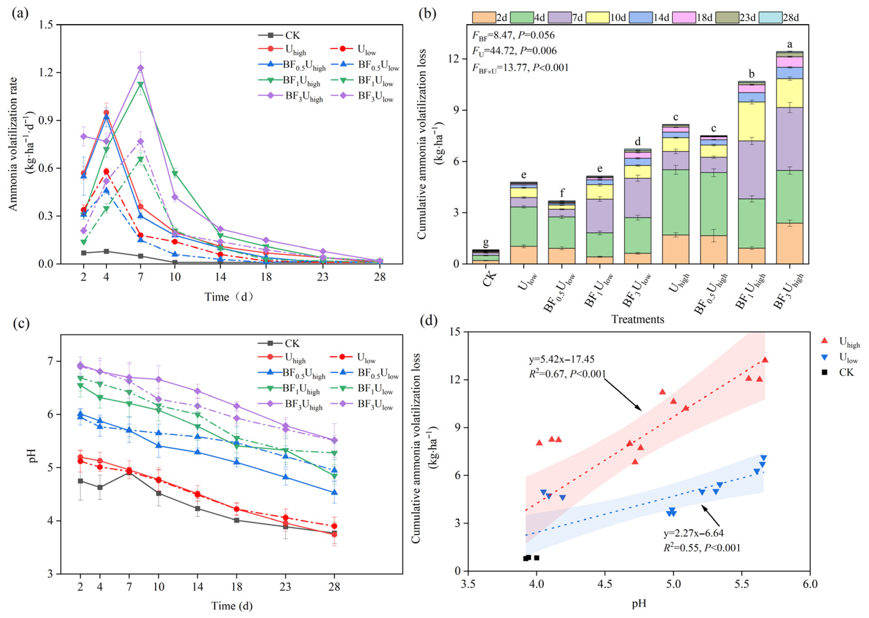 | NH3 volatilization loss | 3.37 b | 1.44 c | 1.41 c | 0.70 d | 3.97 a | 0.84 d | 0.74 d | 0.38 e |