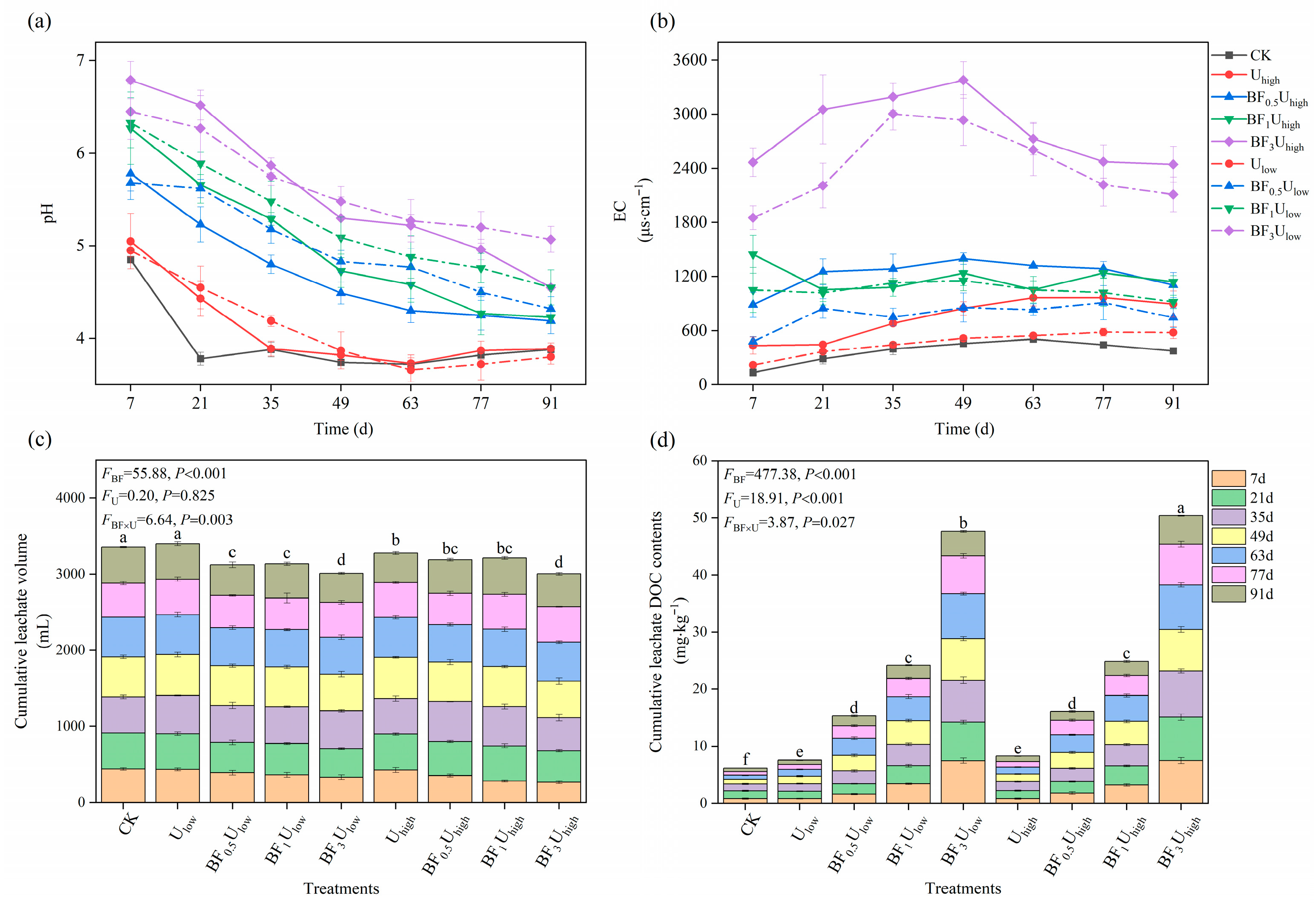 | Dose (t·ha−1) | CK | Uhigh | BF0.5Uhigh | BF1Uhigh | BF3Uhigh | Ulow | BF0.5Ulow | BF1Ulow | BF3Ulow |