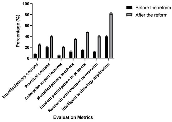 - Stakeholder Synergy: The involvement of industry experts in teaching grew from 5% to 20%, and the percentage of faculty members with interdisciplinary backgrounds saw a substantial increase from 12% to 35%. Furthermore, students’ participation in authentic industry projects surged from 15% to 48%.