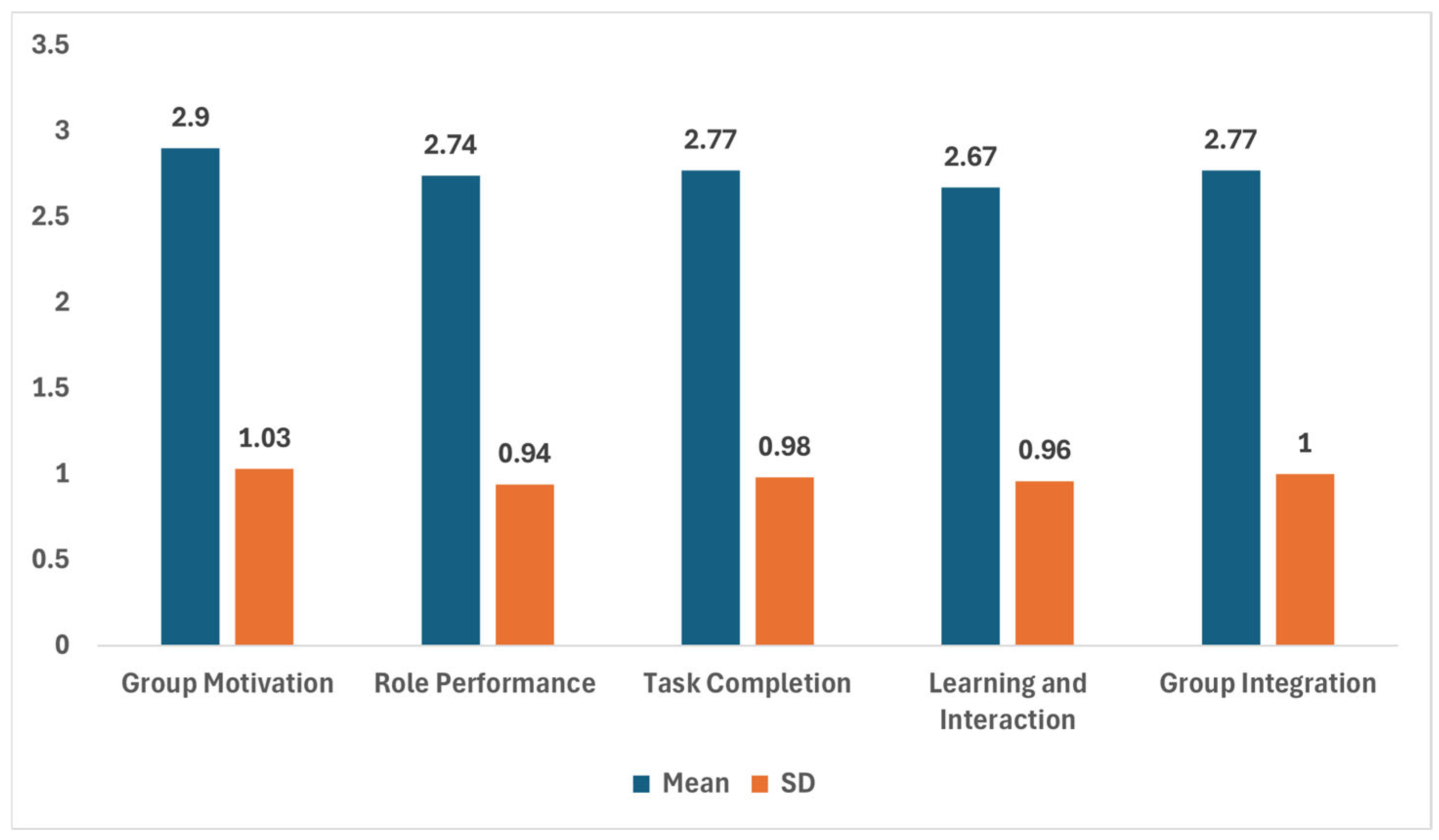 | Group Motivation | 2.9 | 1.03 | 3 | 1–4 |