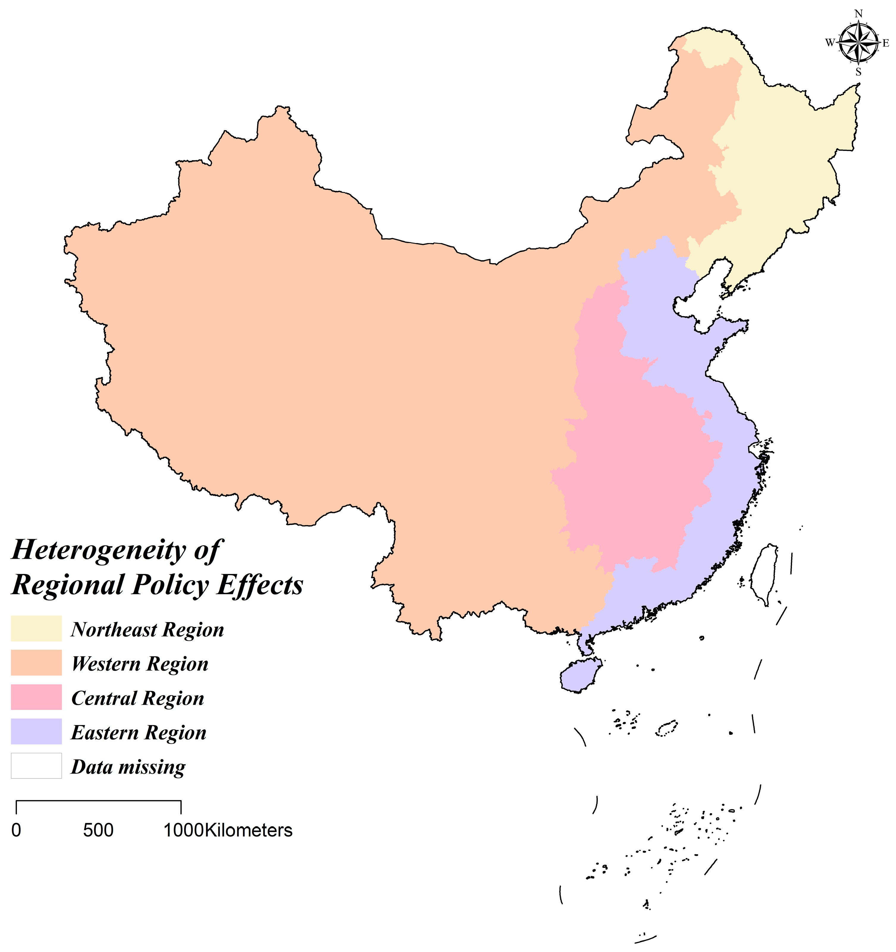 Figure 11 illustrates the spatial distribution of cities categorized by the four official regional divisions.