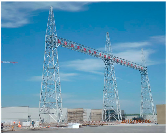 Under the global imperative to achieve carbon neutrality, the rapid expansion of renewable energy systems, such as wind, solar, and hydropower, has become a cornerstone of sustainable development. However, the geographical disparity between renewable energy generation sites and electricity demand centers necessitates robust, long-distance transmission infrastructure to minimize energy loss and maximize grid efficiency [1,2]. 1000 kV UHV transmission technology plays a pivotal role in enabling sustainable energy integration [3,4,5,6]. As critical nodes in UHV networks, substation gantries support conductors and electrical equipment, ensuring the stability and reliability of renewable energy transmission [7]. UHV substation gantries often adopt multi-span lattice structures, combining high-rise and long-span features to meet operational demands. However, their inherent characteristics, such as low natural frequencies and complex modal distributions, heighten their susceptibility to wind-induced vibrations. Consequently, they face significant risks of structural deformation, fatigue damage, and potential power outages under extreme wind conditions [8]. Addressing these challenges through precise assessment of wind load distribution and wind-induced response is essential not only for structural safety but also for advancing the resilience of sustainable energy infrastructure.