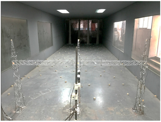 Figure 18. Wind tunnel test for the UHV substation gantry aeroelastic model.