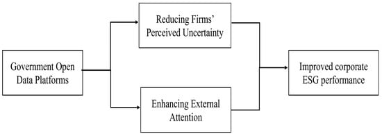 Open government data refers to the practice of making government-generated data freely available to the public in machine-readable formats for unrestricted use and re-use. As a core component of digital government construction, open government data initiatives have proliferated worldwide over the past decade, aiming to improve transparency, accountability, and public participation [13]. Theoretically, opening public data can reduce information asymmetry, enhance trust in government, and improve the predictability of the regulatory environment. Empirically, studies have shown that open government data can stimulate transparency [14], innovation [15], investment, and capital flow [16]. Yet little is known about whether and how open government data affect corporate ESG performance.