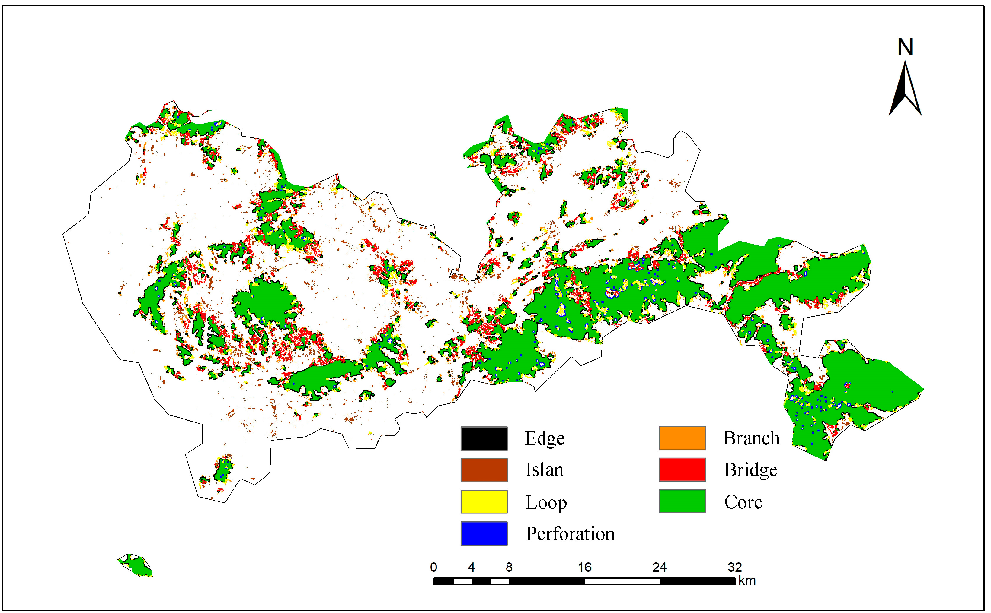 3.1.1. Landscape Pattern Analysis of Shenzhen City Area Based on MSPA