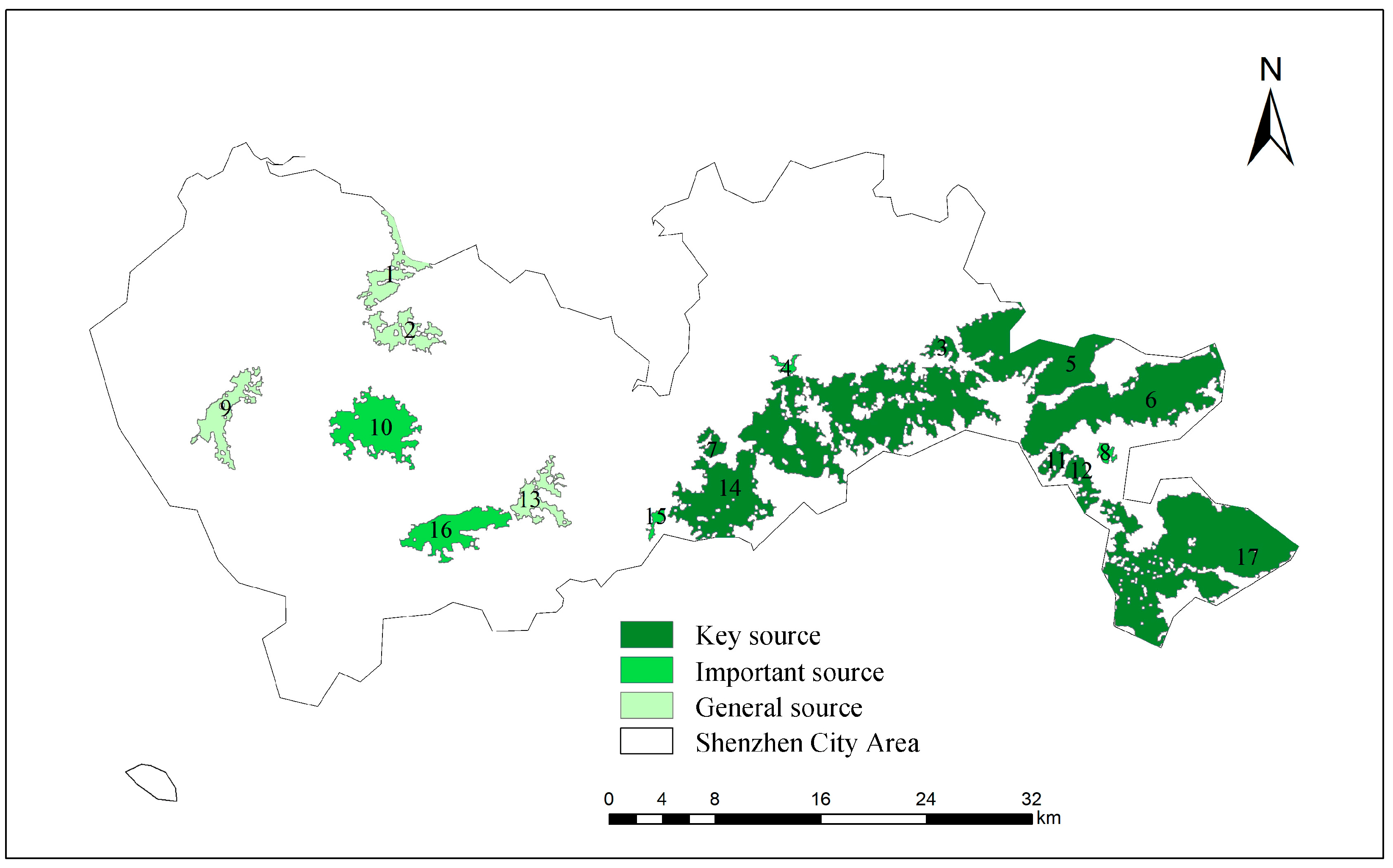 3.1.3. Classification of the Importance of Ecological Sources in Shenzhen City Area