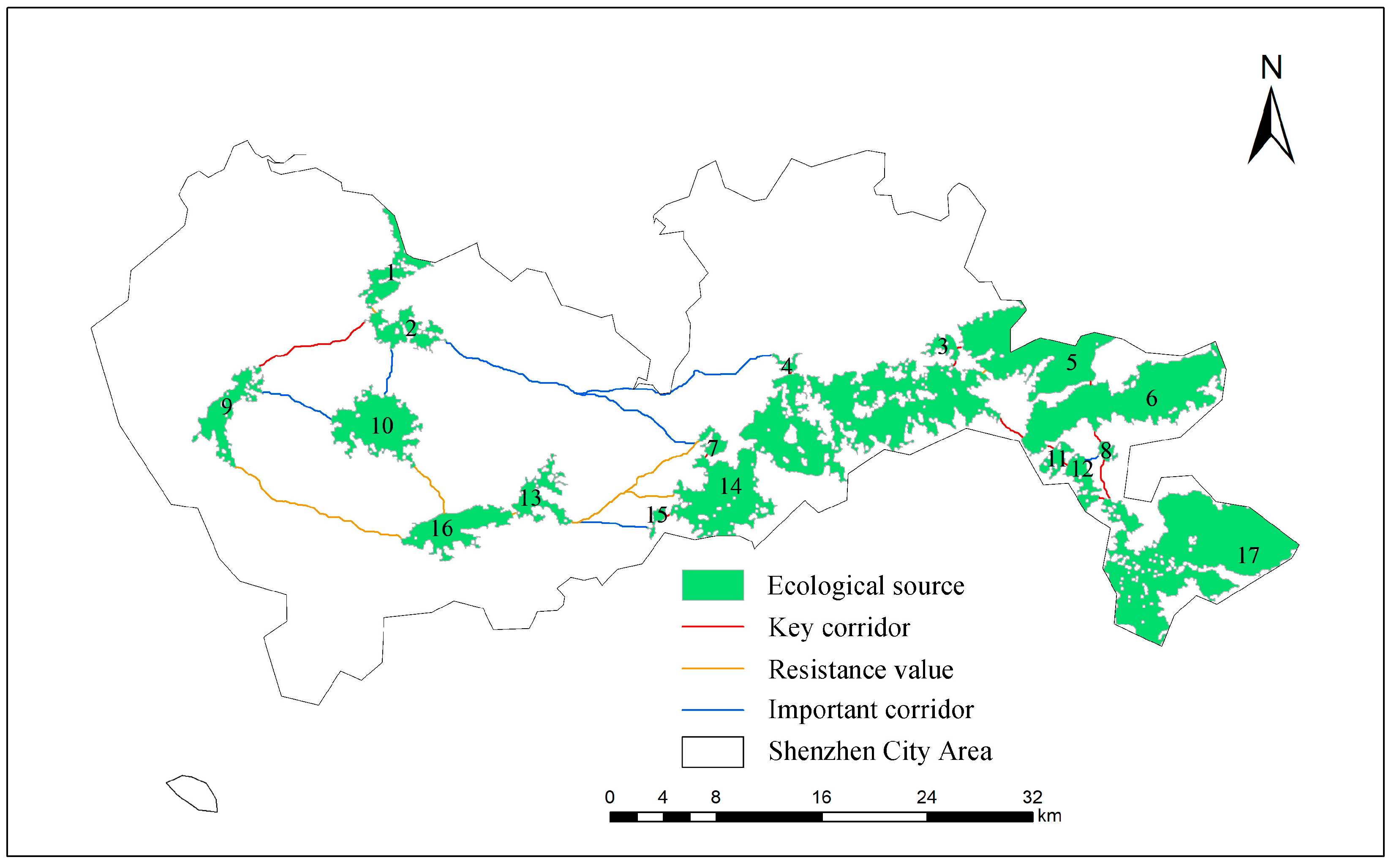 - Liu, X.Q.; Huang, B. Construction of Urban Ecological Security Pattern Based on Multi-Source Data: A Case Study of Shenzhen. Ecol. Sci. 2025, 44, 241–253. (In Chinese) [Google Scholar]