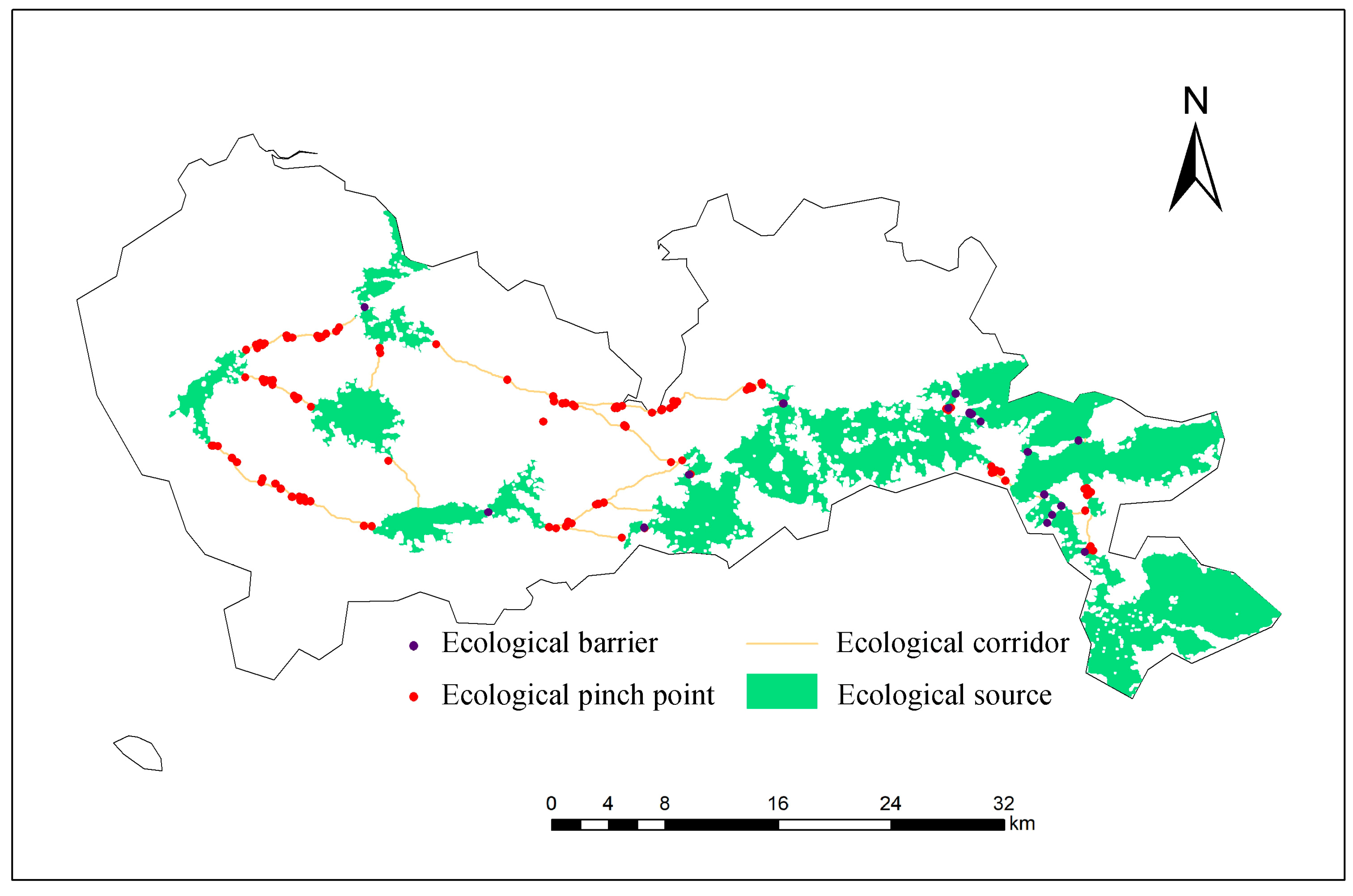 3.3. Identification of Ecological Pinch Points in Shenzhen City Area