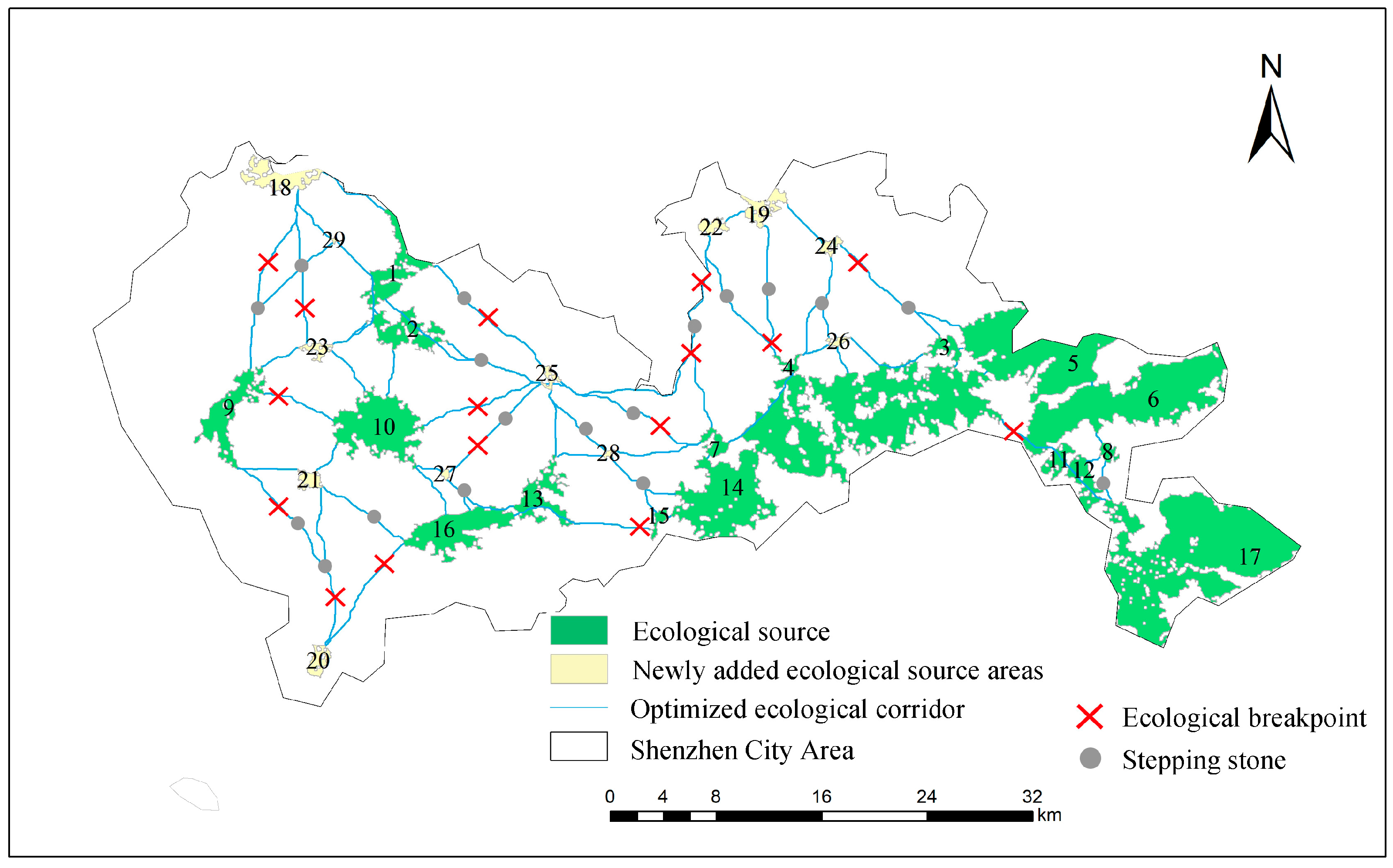 3.5. Optimization and Evaluation of the Ecological Network in Shenzhen City Area