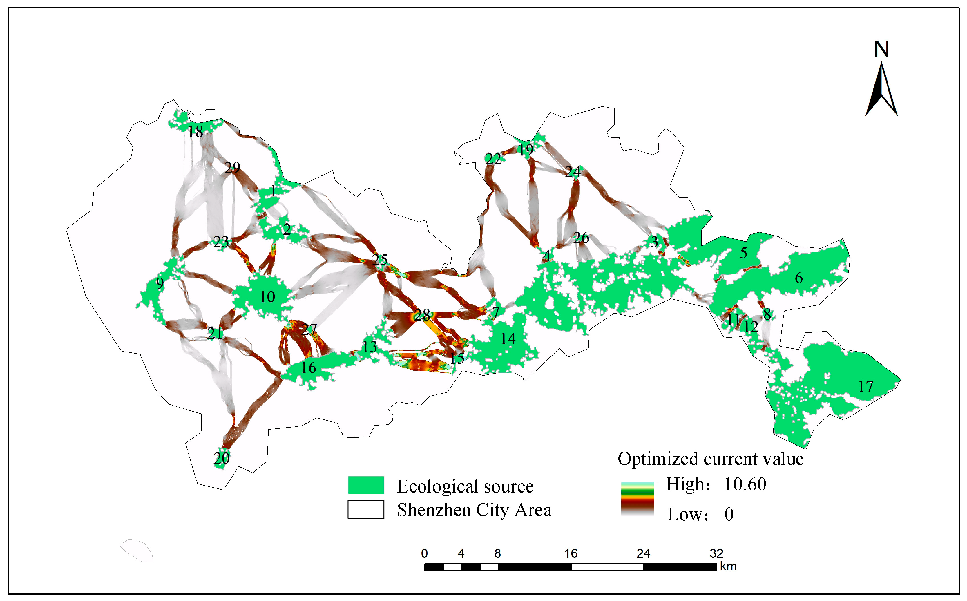 3.5.2. Functional Evaluation of the Ecological Network Based on Circuit Theory