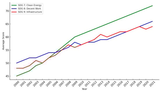 Dynamics of SDGs 7, 8, and 9 in Qatar (2000–2021).