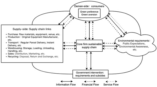 From a structural perspective (Figure 1), modern SSCs operate as multi-stakeholder ecosystems, where diverse actors—such as consumers with varying green preferences, manufacturers, green technology and material suppliers, and government agencies—are interdependent. Each supply chain link contributes differently to the overall system, creating challenges in aligning stakeholder objectives.