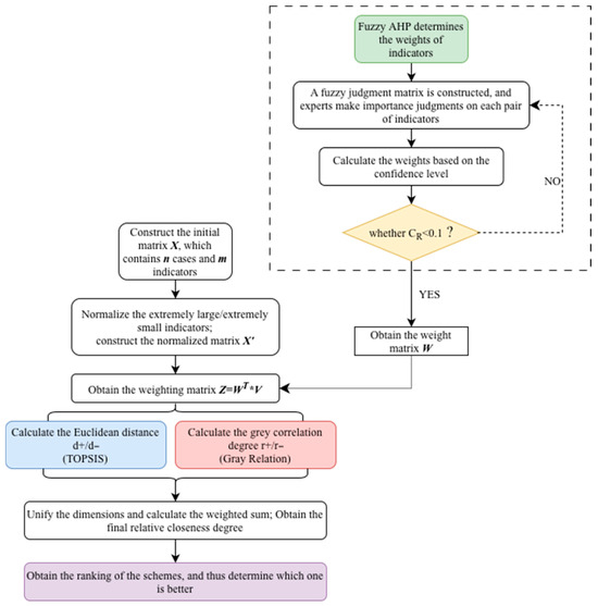Flowchart of the FAHP-GR-TOPSIS hybrid method.