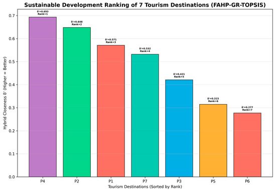 To sum up, the FAHP-GR-TOPSIS model provides a quantifiable tool for tourism sustainability evaluation. The study’s results are applicable to three types of stakeholders: (1) government departments, especially municipal culture and tourism bureaus: The evaluation system can be used to formulate regional tourism policies—for example, regions with high economic dependence (Sanya) can be guided to develop supplementary industries (e.g., marine aquaculture); (2) tourism enterprises, including scenic spot management companies: The indicator weights remind enterprises to increase investment in environmental protection (e.g., ecological restoration projects); (3) tourism sustainability associations: The case analysis can be used to promote best practices (e.g., popularizing Chiang Mai’s rural tourism model in other developing regions). We hope that future research can further expand the model’s application scope to cover more tourism types and global regions.