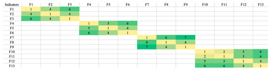 Taking a certain element of the upper level as the evaluation criterion, the element matrix is determined by comparing each pair of elements at the current level. The fuzzy judgment matrix is constructed as follows: