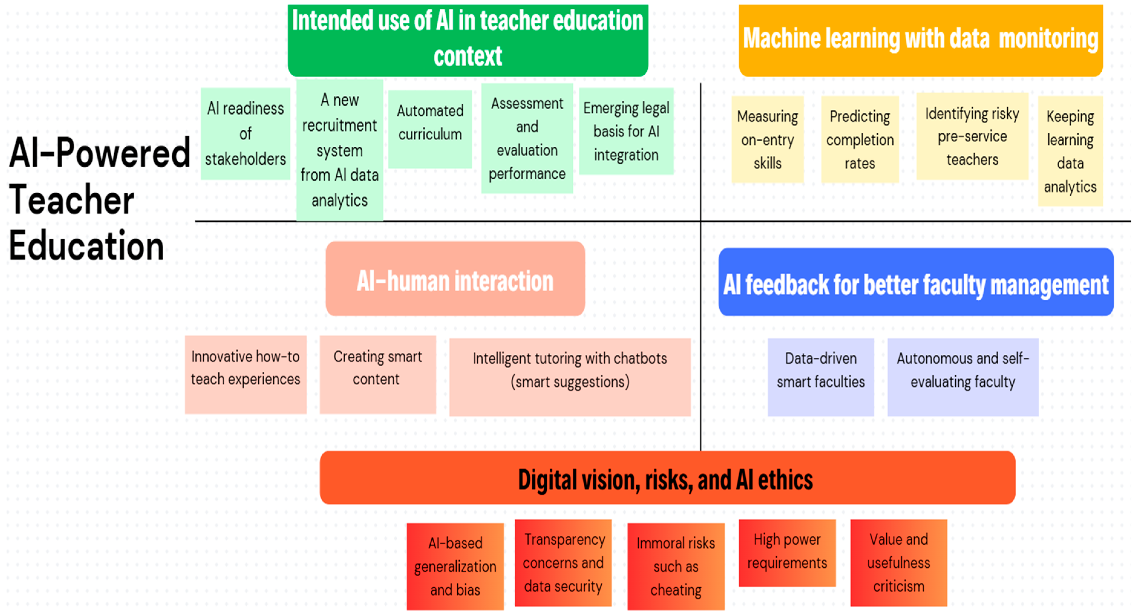 13] emphasized that different sectors varied in their AI readiness, arguing that the educator community (teacher education in particular) needed to focus on building AI-powered learning communities rather than understanding its technical infrastructure. Ref. [