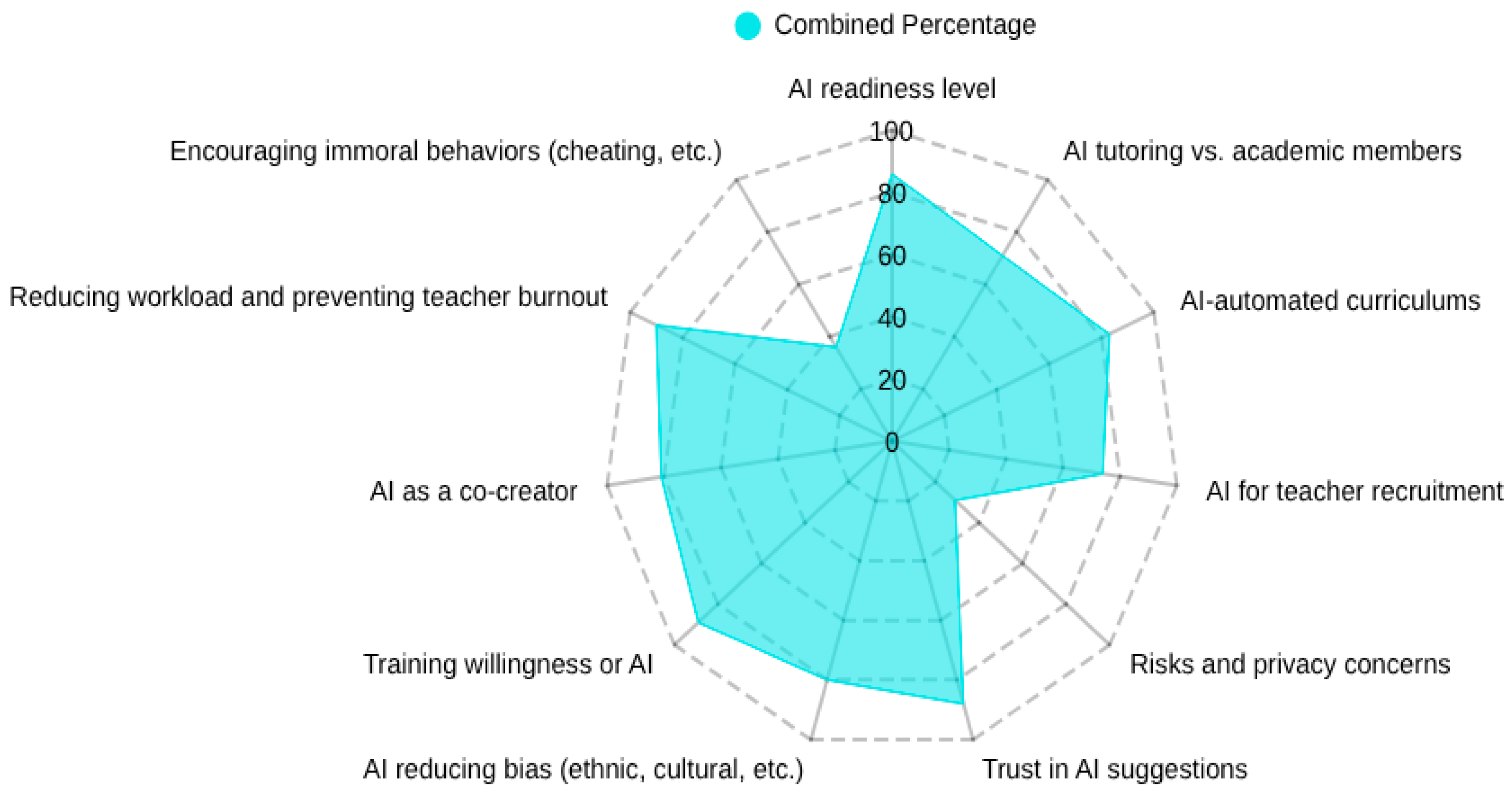 Metric 1 (AI Readiness): To achieve a 70% combined positive response rate (Agree/Strongly Agree) among pre-service teachers on the ORATE Survey items related to “AI readiness level as a future teacher” within the first year of integration.