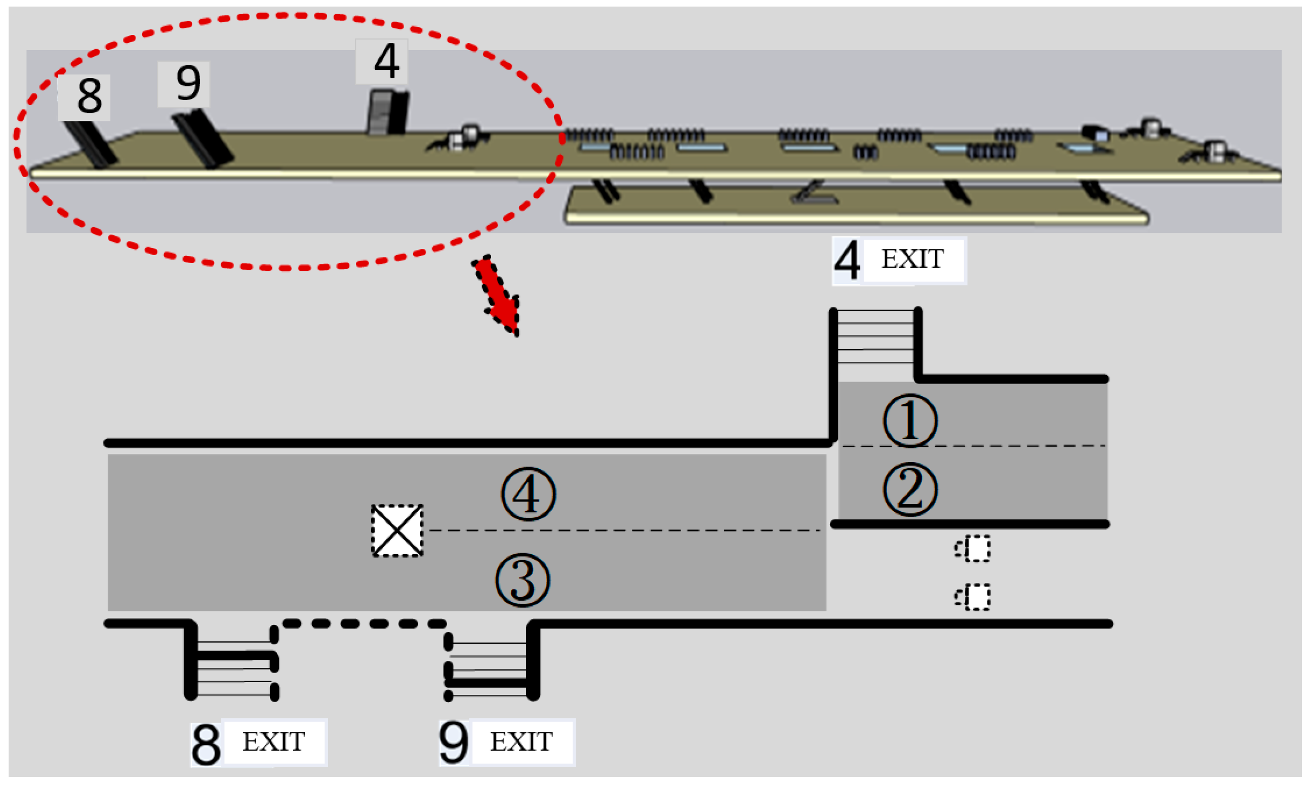 | Dispersal Periods | Entrances/Exits | Channel Width Ratio | Security Check Machines (Unit) | Fare Gates (Unit) | Stairs/Escalators | |||