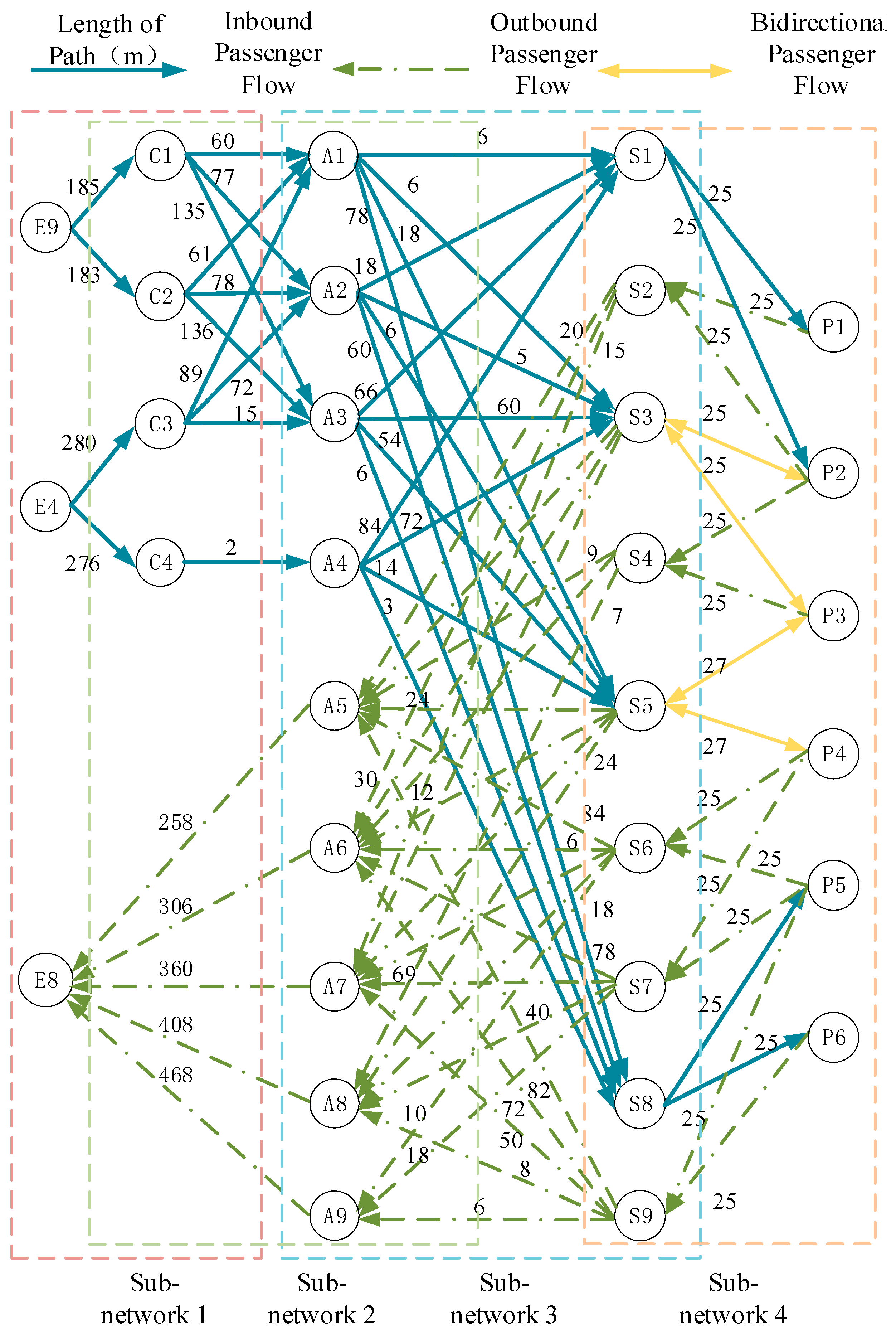 APA StyleHu, H., Zhang, R., Hao, Y., He, Y., & Liu, Z. (2025). Optimization Model for Passenger Flow Control and Service Capacity Allocation in Subway Station Pedestrian Facility Networks. Sustainability, 17(21), 9816. https://doi.org/10.3390/su17219816