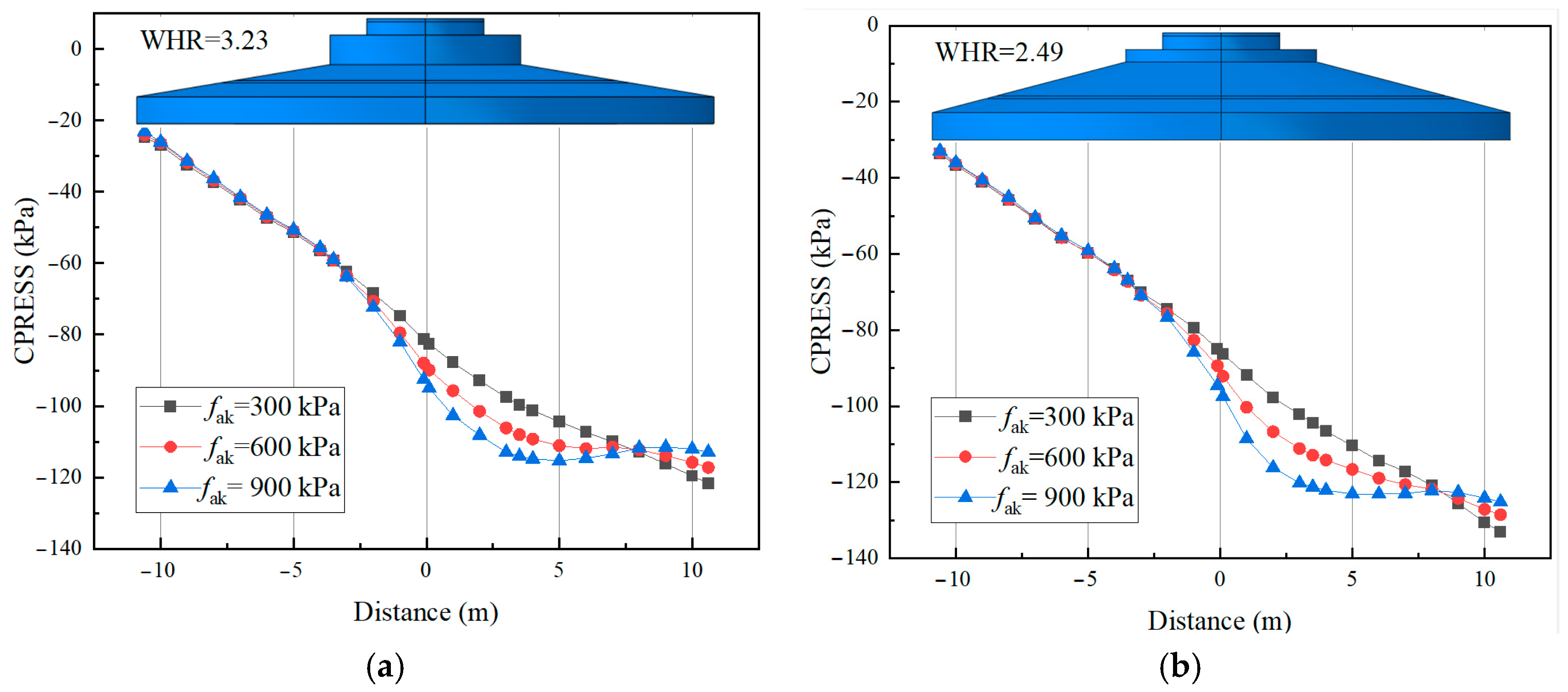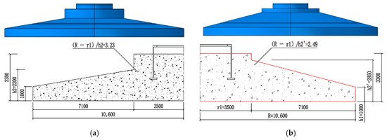 Foundations with Two Different Width-to-Height Ratio Sizes. (a) (R − r1)/h2 = 3.23. (b) (R − r1)/h2 = 2.49.