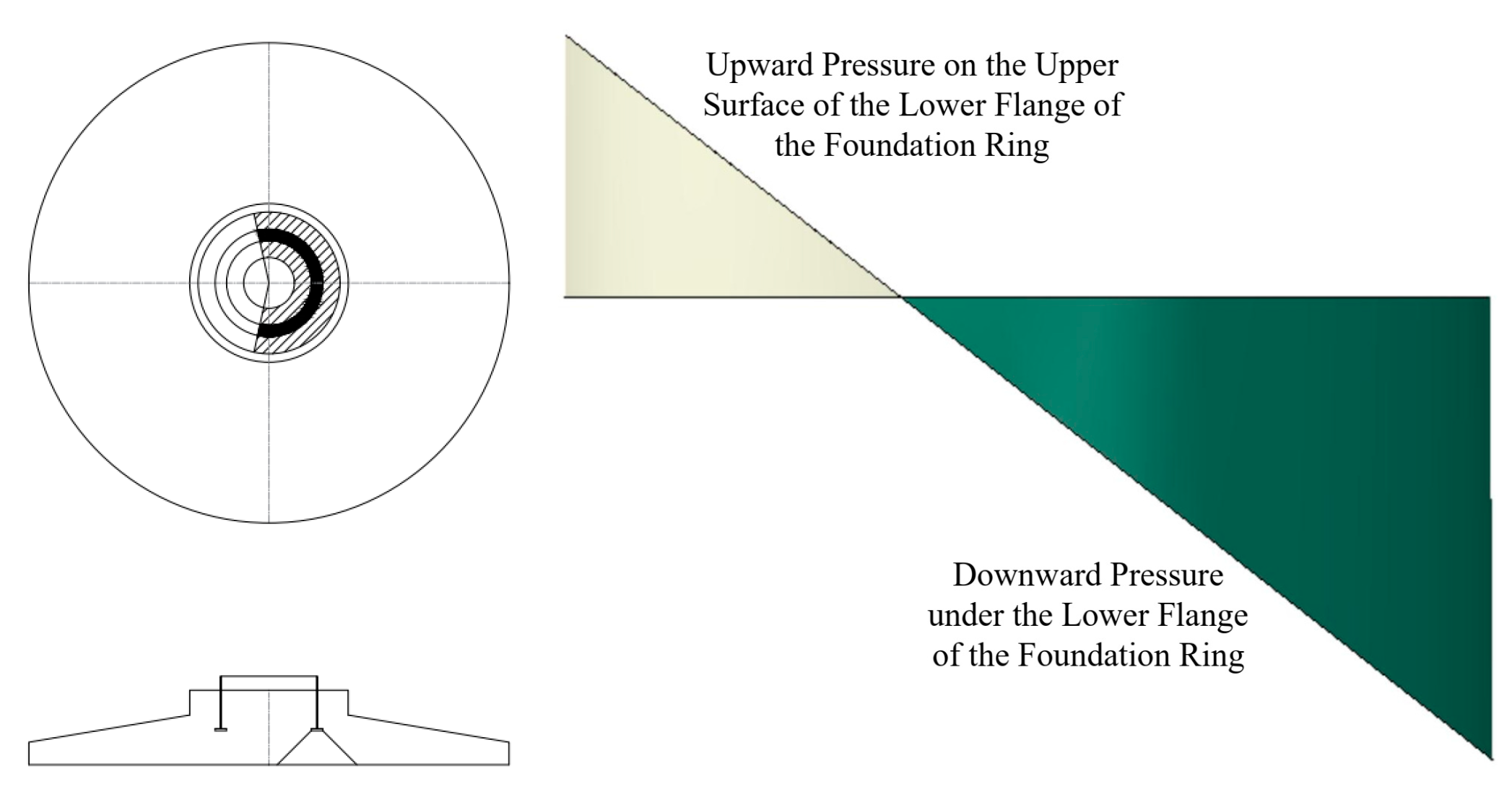 When calculating the upward punching shear of the lower flange of the foundation ring, the friction between the side wall of the foundation ring and the foundation concrete is neglected. The calculation is performed assuming that all the upper distributed loads are transmitted to the bottom flange, and the calculation diagram is shown in