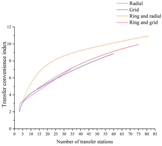 Transfer convenience index under different network morphologies.