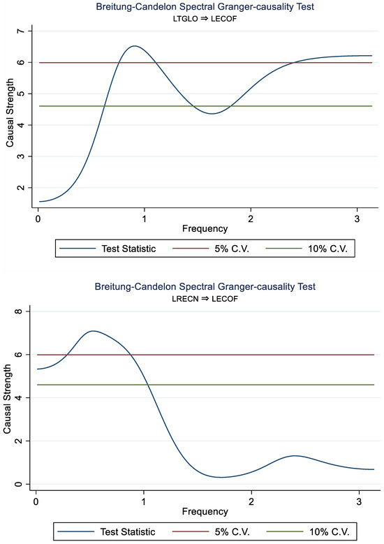 - Third, in addition to the ARDL approach, also utilized by existing studies such as [18,19], this research employed the Frequency Domain Causality approach to support the ARDL findings.