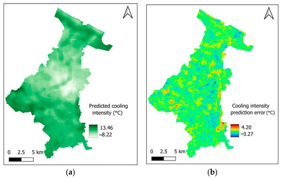 Ren et al. [40] introduced a data-driven approach that combines interpretable machine learning and benefit evaluation to analyze spatial variability, support spatial planning, and quantify cooling benefits. This study explored the nonlinear and spatially heterogeneous effects of the cooling effect delivered by green spaces. SHAP has been employed to enhance the transparency of the model; this method was shown to facilitate a clearer understanding of contributing factors. The combined method emphasizes the substantial impact of dense green space on mitigating urban heat stress. The review by De Cristo et al. [60] emphasizes the urgent need to effectively mitigate urban heat stress, enhance building energy efficiency, and stabilize temperature fluctuations through optimized green space configurations, such as green roofs. A recent survey by Budzik et al. [24] pointed out an increasing tendency to use advanced techniques for evaluating blue–green infrastructure features that determine its cooling effectiveness.