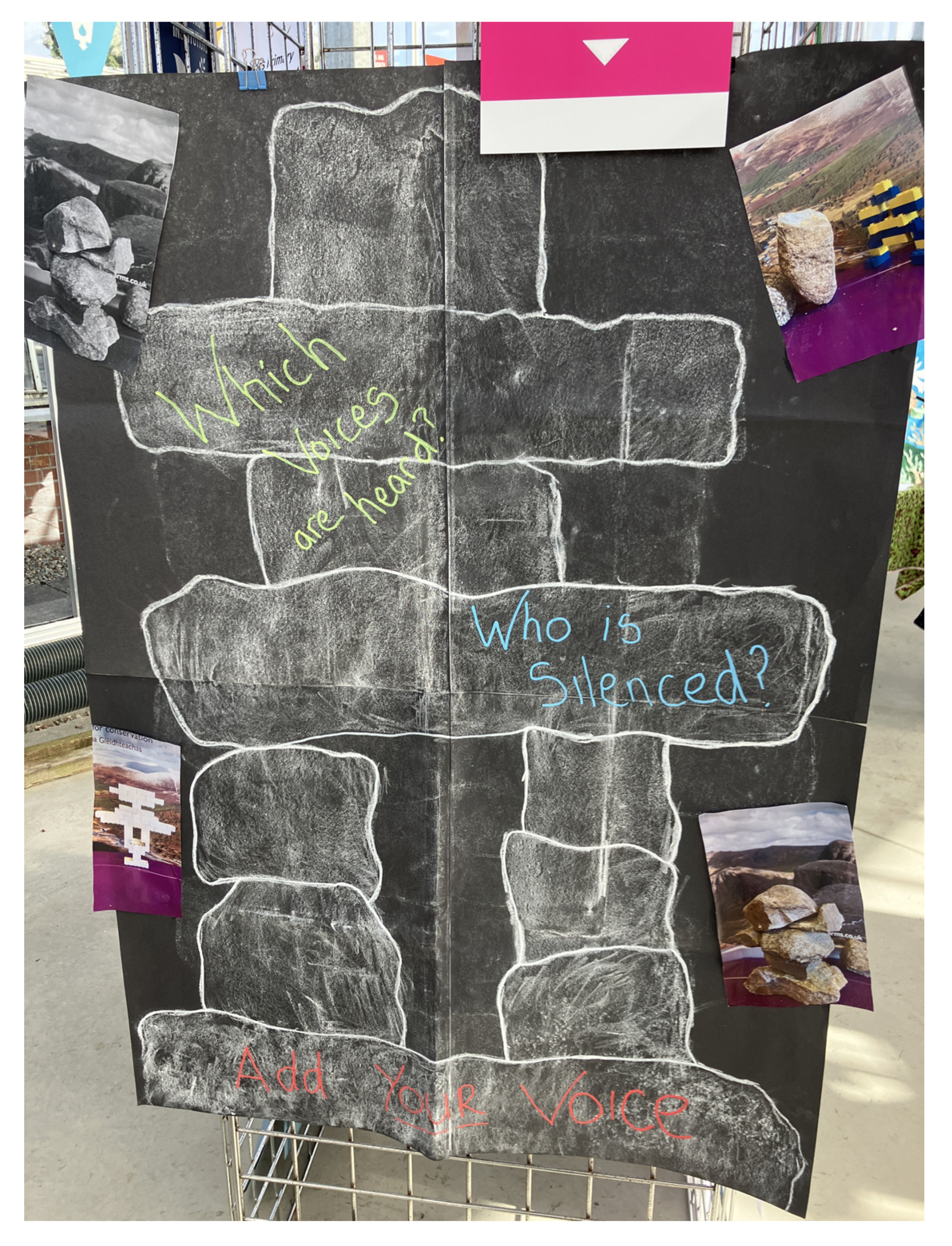 Figure 1). Inukshuk means ‘in the likeness of a human’ and are considered a ‘voicing’ of navigation or warning of dangers. They are made of local, naturally available stones, stacked to resemble the human form, and it is disrespectful to build Inukshuks that damage the landscape or interfere with the natural habitat. Previously, during the United Nations (UN) Climate Change Conference in Baku in November 2024, this school invited all attendees at their mock-COP to bring stones from their area to build an Inukshuk to represent their collective views.