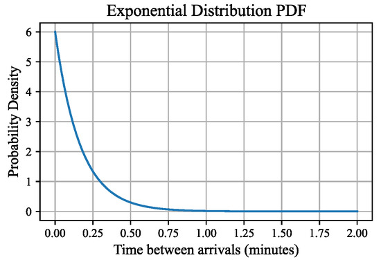 where the constant rate d represents the vehicles that enter the system per minute, t represents the time interval between consecutive vehicle arrivals. Taking as an example, (1) is plotted in Figure 3.