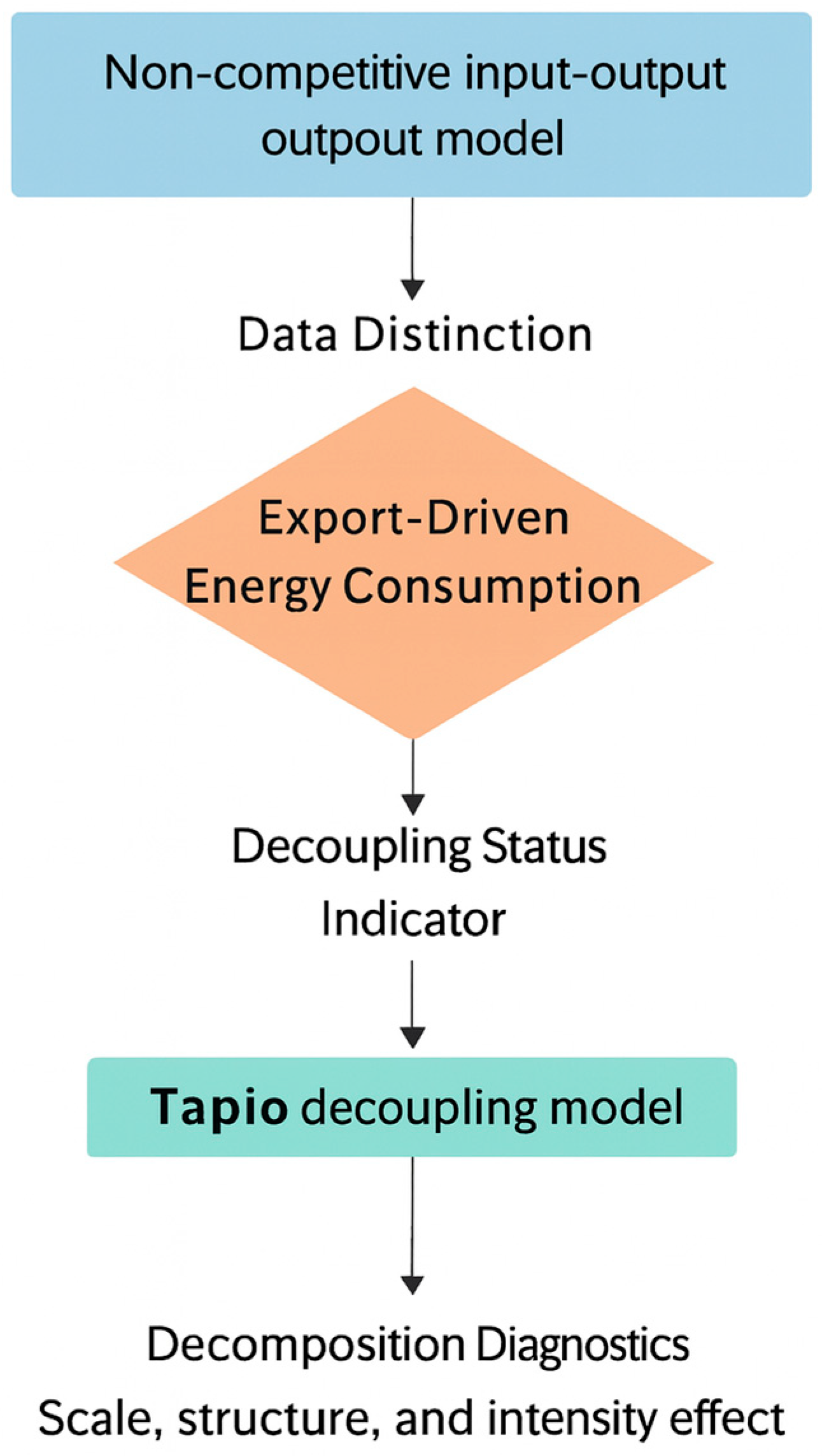 - Integration of Contemporary Input–Output Data. By utilizing the latest noncompetitive in-put–output tables from China’s National Bureau of Statistics and the WIOD, this study refines de-coupling analyses by distinguishing domestic from imported inputs. Spanning data from 2002 to 2018, it provides a nuanced assessment of the distinct impacts of domestic production and import-ed intermediate goods on China’s energy consumption.